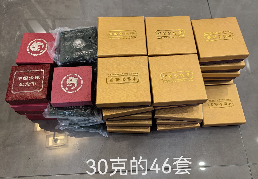 其余继续:30克银猫46个,555一个,其中2016年10个,2017年27个,2019年9个,证书齐全。要盒子和手提袋每套加10元,一起走,卖家三包