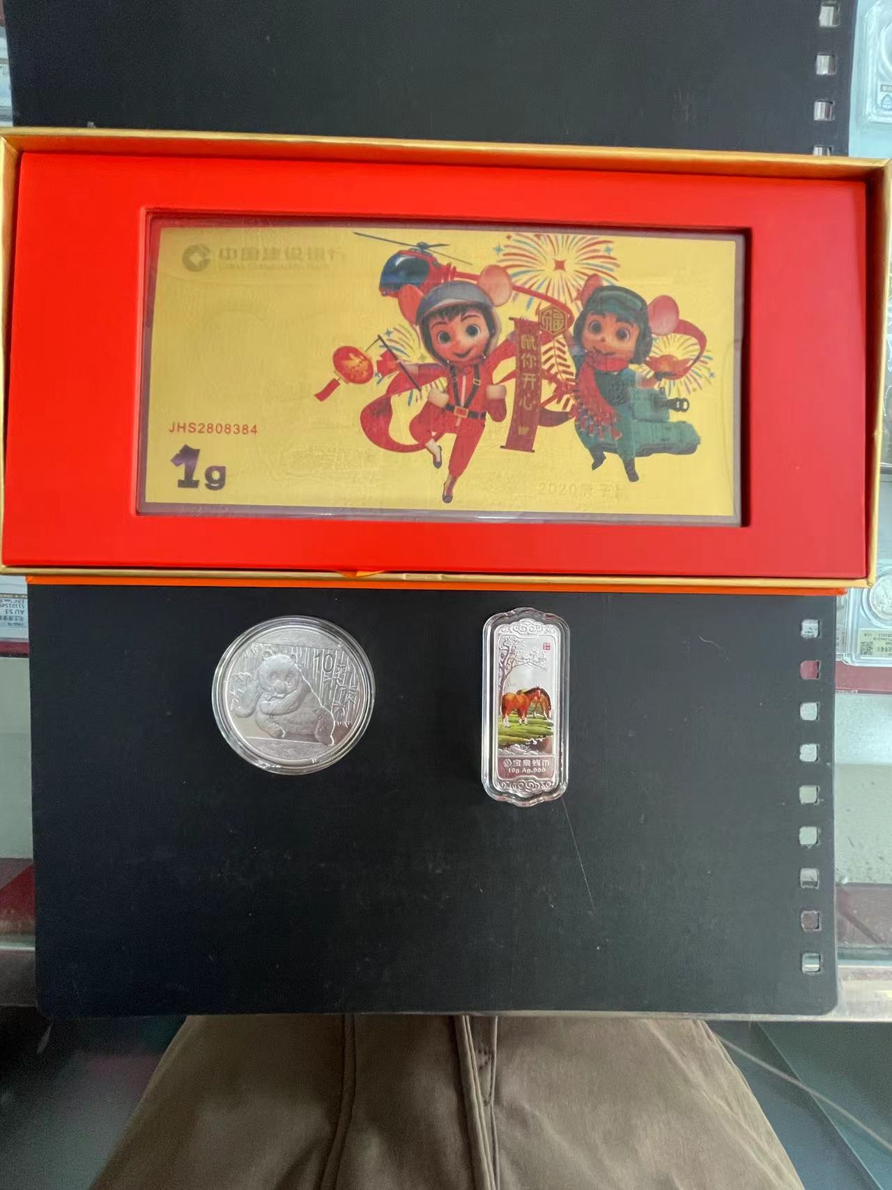 ◆◆建行1克金钞1个.一盎司银猫10克银条各1个