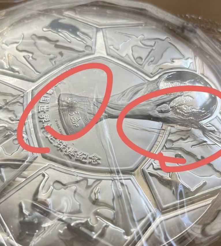 代友出售足球公斤银币2枚盒证齐全20500x2=41000,
