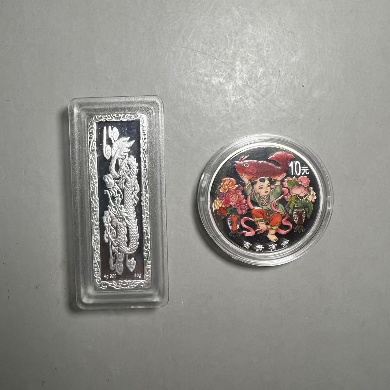 → 低于银价出香港回归20周年银币 富贵有余银币 50克银条