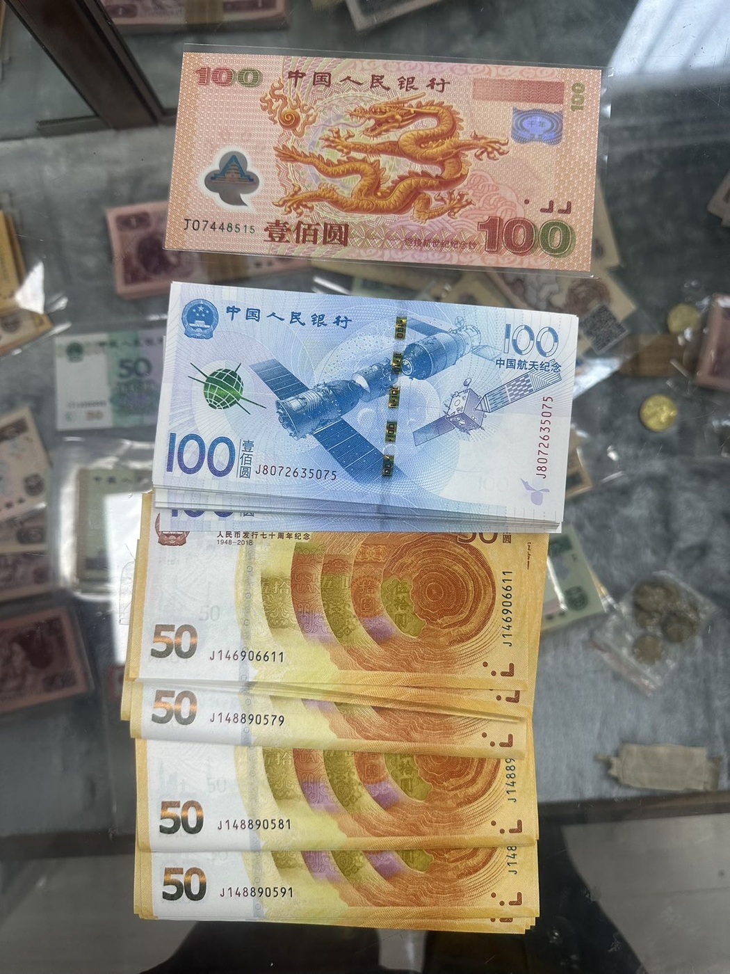 → 大龙钞一张,航天钞50张,70钞38张