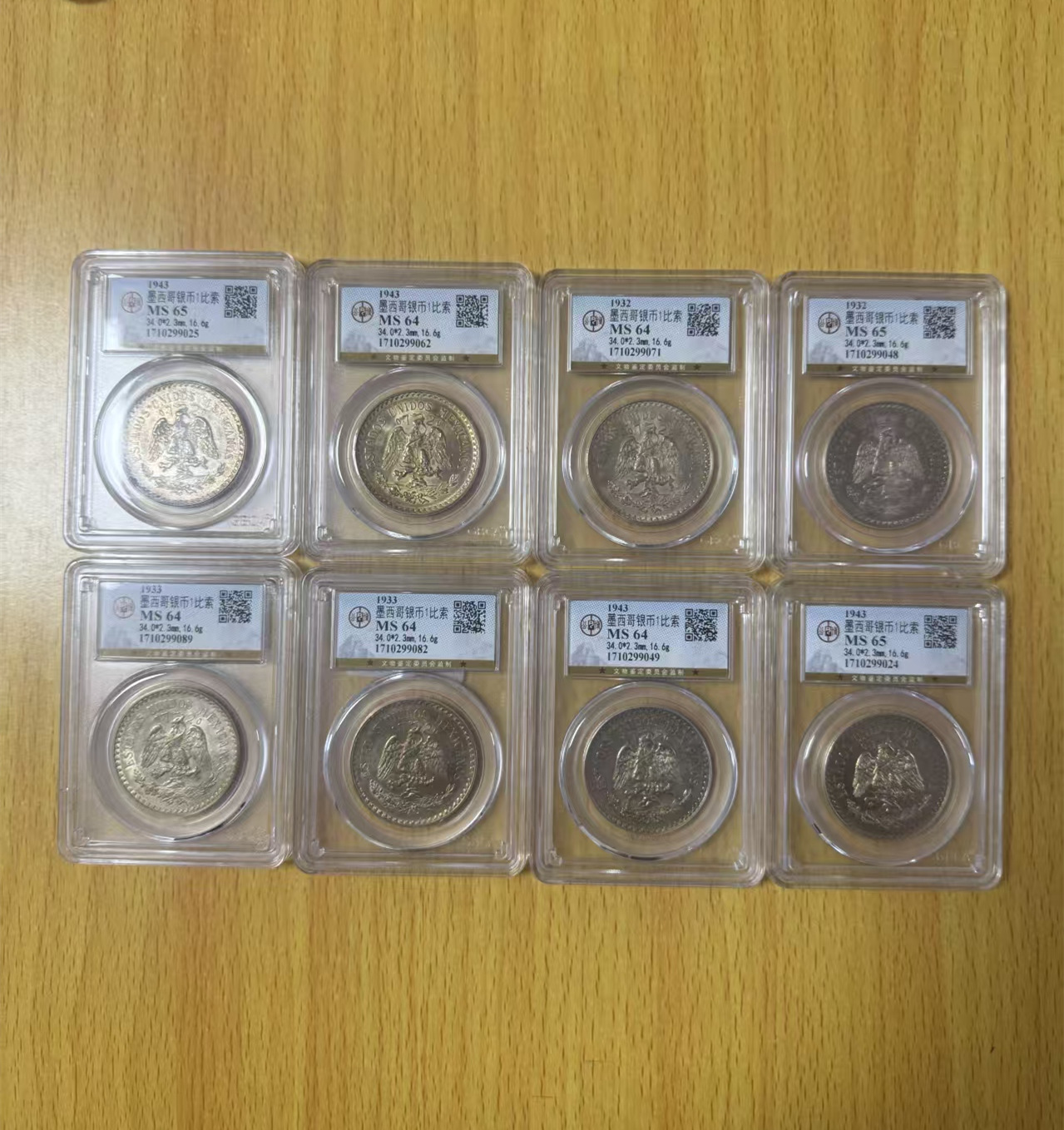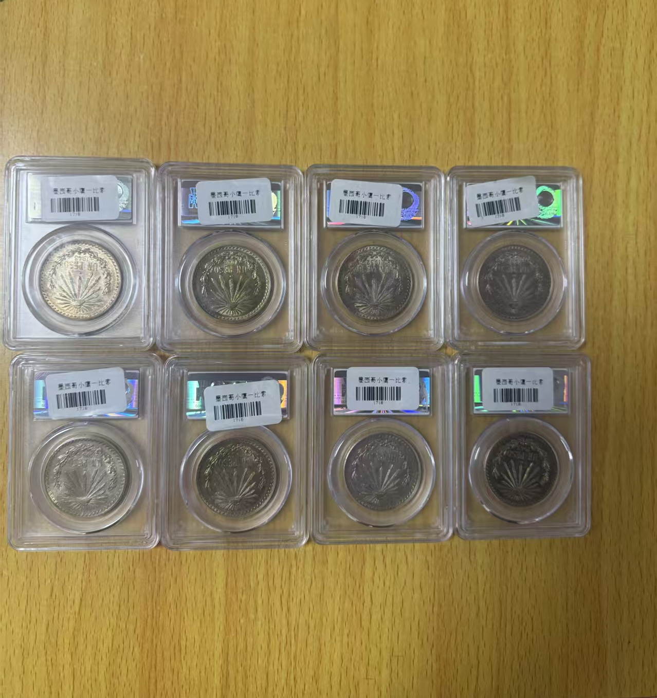 公博评级墨西哥鹰洋1比索银币 8 枚,249/枚一起出
