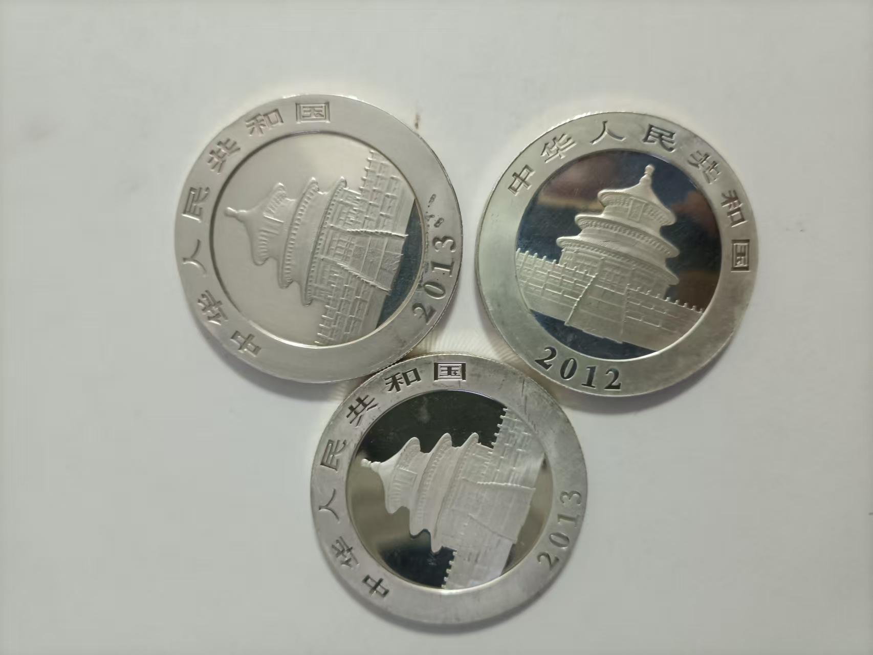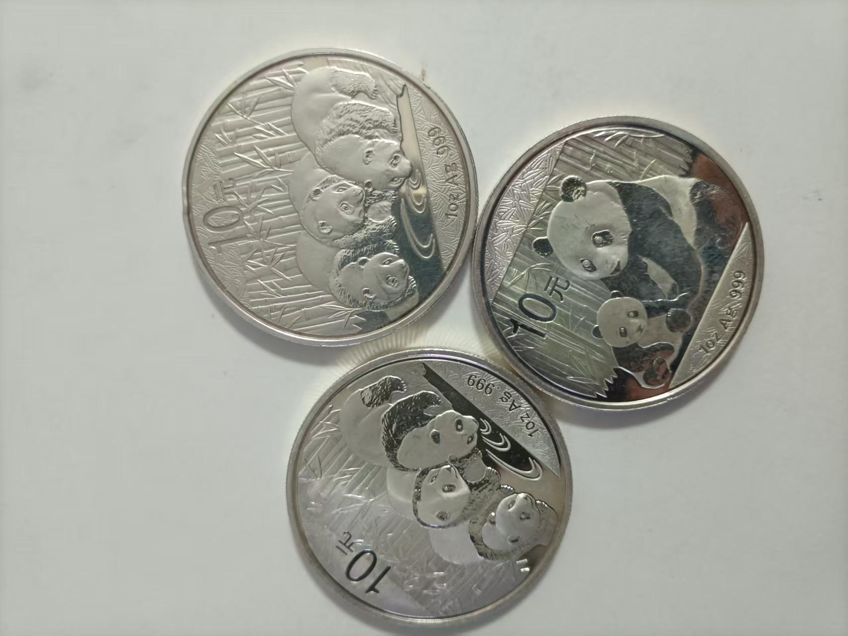 三枚差品一盎司熊猫银币,料价,有磕碰划痕,610元一枚包顺丰,可微信看细图。