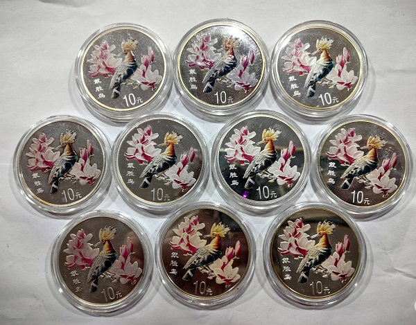 → 610元枚岀1盎司戴胜鸟,海南建省20周年共14枚