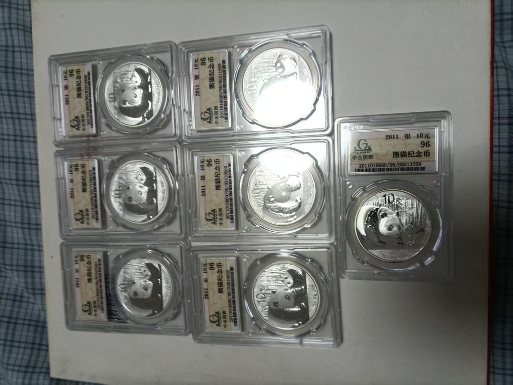 2011年熊猫一盎司银币7枚,中金国衡封装,630元一枚三包顺丰。
