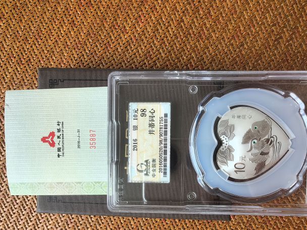 2016年吉祥文化并蒂同心30克金总封装,国衡评级心银