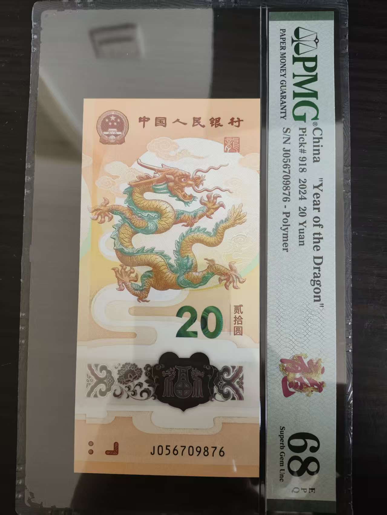 出小龙钞顺子靓号PMG68分一张