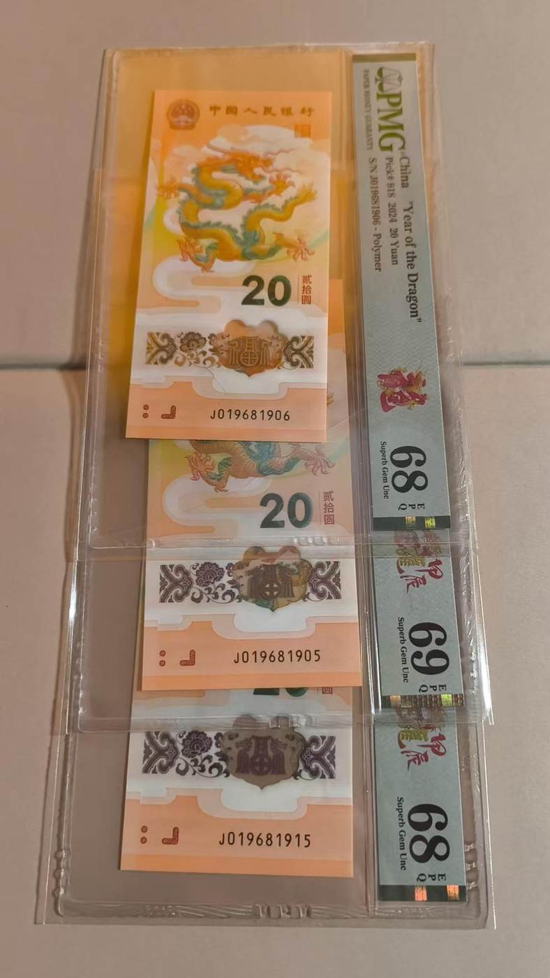 出小龙钞pmg68分69分五福倒置头金马号