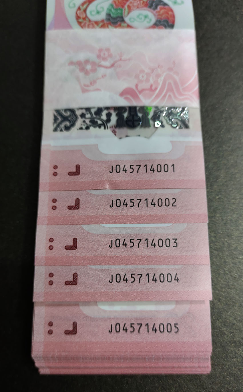 低出蛇钞有瑕疵的百连一刀,详情见图,就前4张有问题,第一张严重点,看好再拍售出不退,2900包邮。