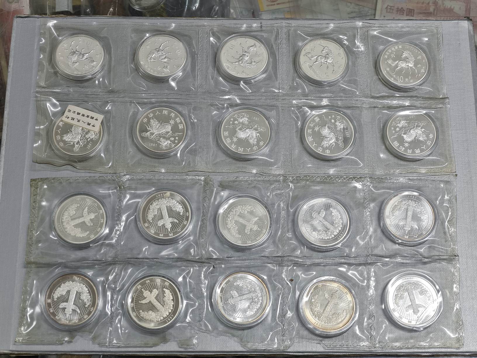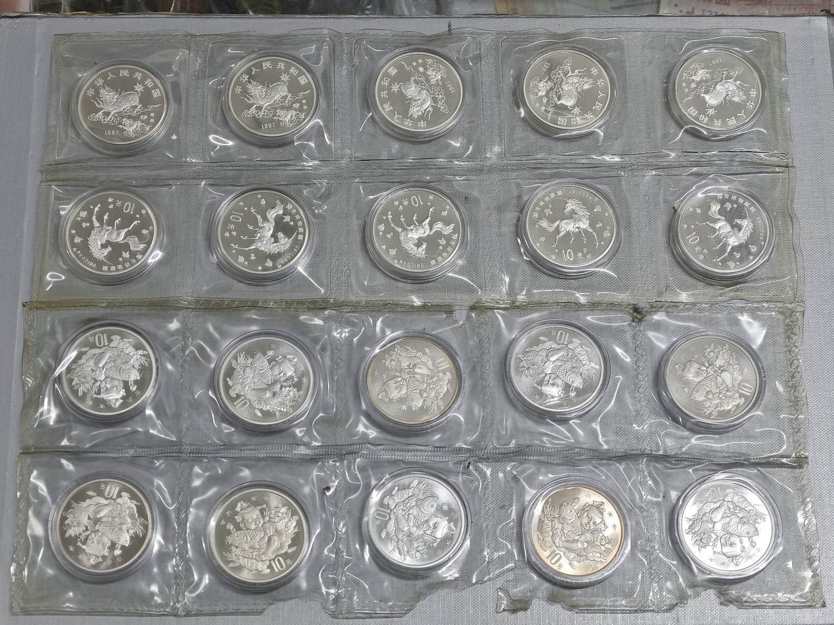 → 出售 1997年麒麟、吉庆有余 银币整板