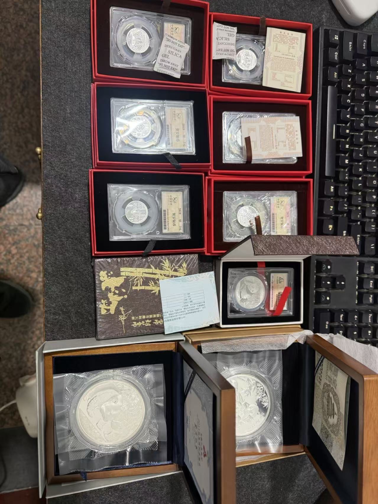→ 代友出15国衡封装银猫2枚,5盎司裸银猫2枚,19封装猫1枚,封装福字币6枚