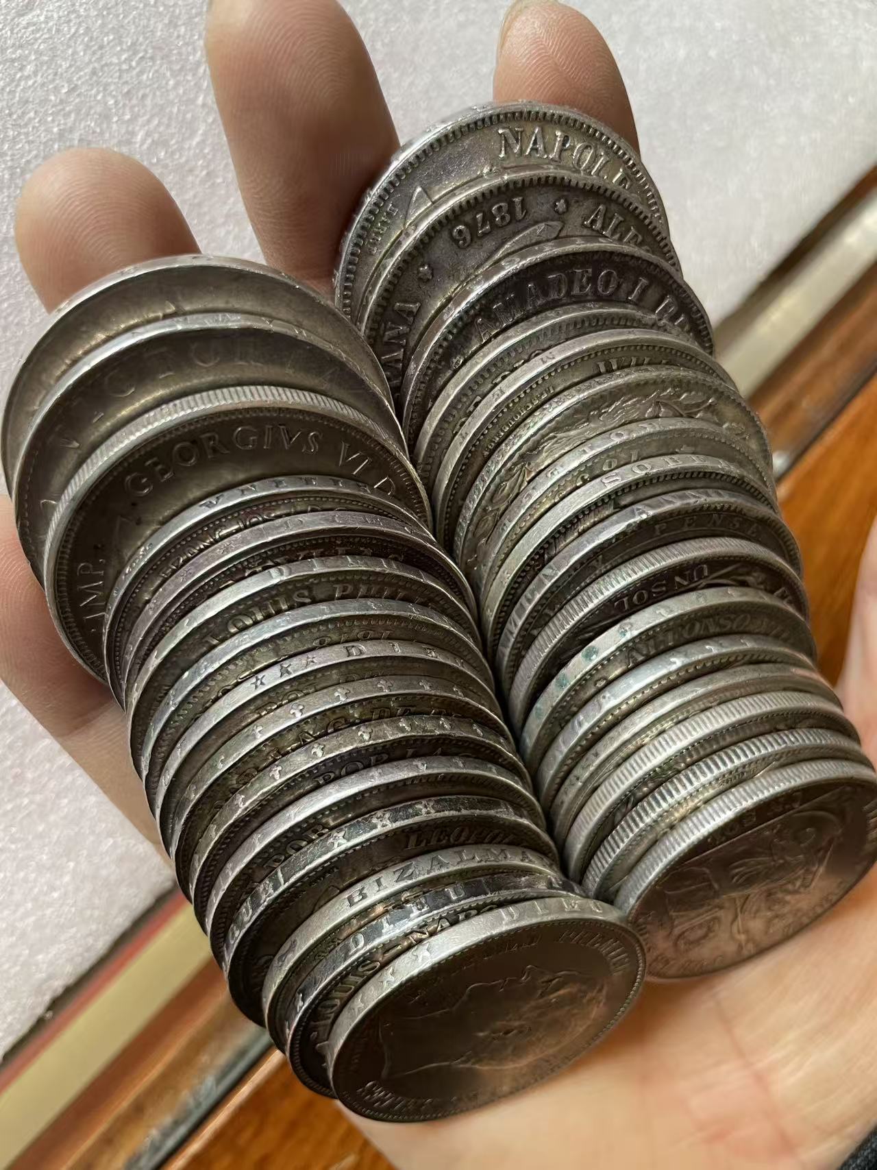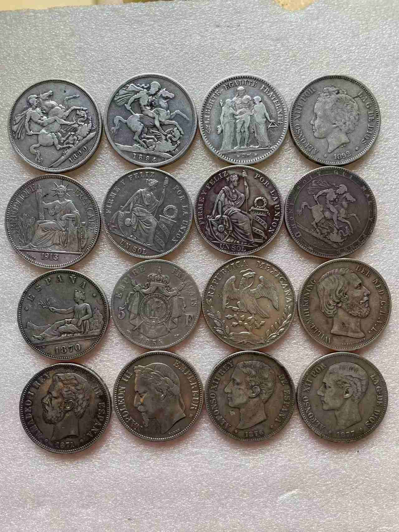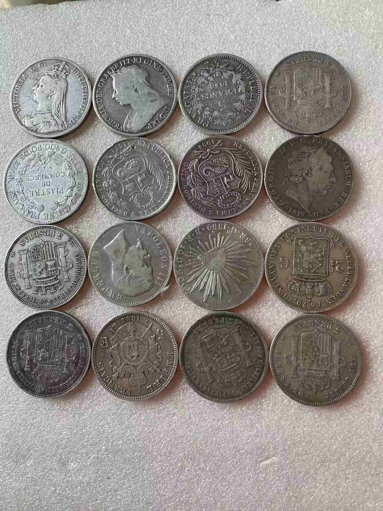 售外国银币31枚。基本都是好品种。克重785.6。成色大多数能达到90左右。低售15.5一克通走。请联系着这个电话或微信:18397117511。