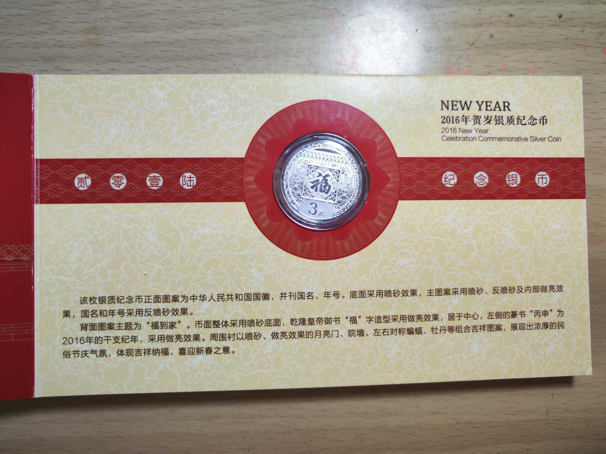 2016年贺岁3元福字币 8克 160元