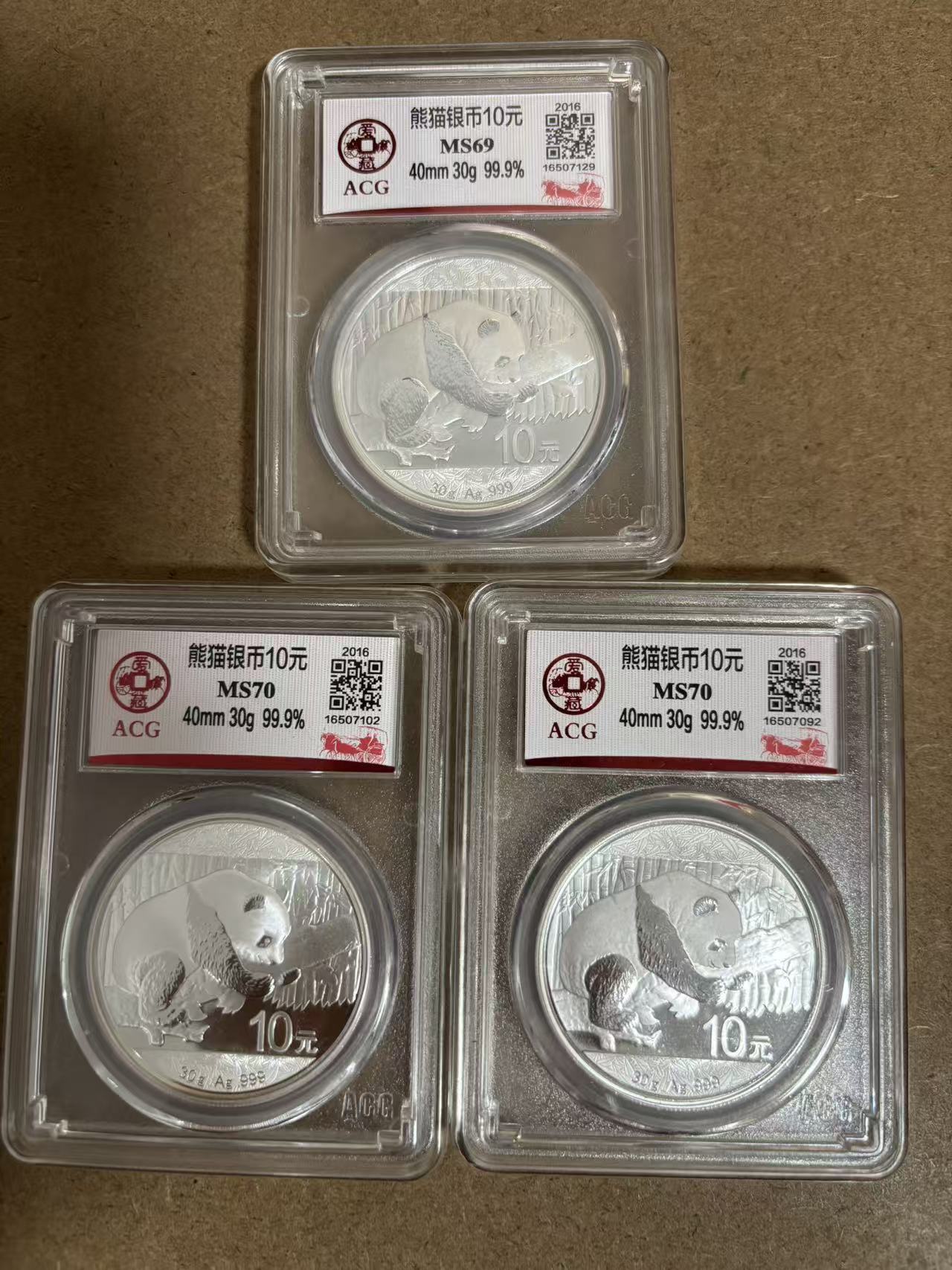 → 出30克银猫3枚评级币