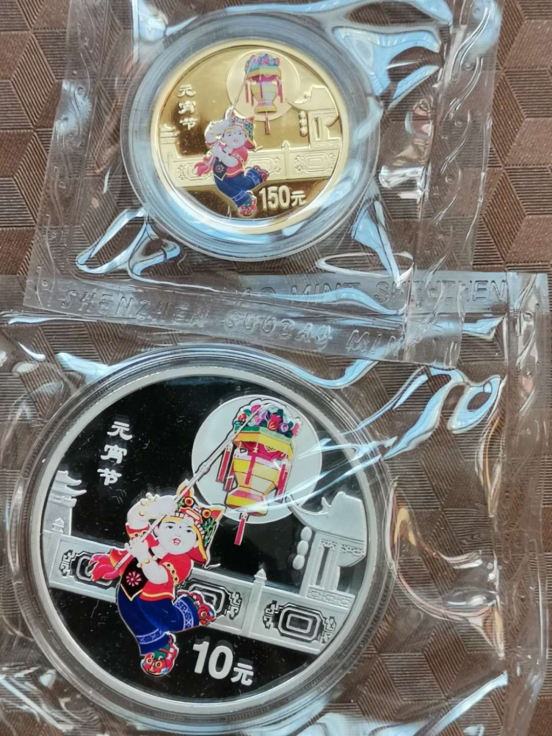 元宵节1/3盎司彩金币+1盎司彩银币,原封全品配件齐全完好,先款11500/套(证书无4,7人三号)顺丰到付。