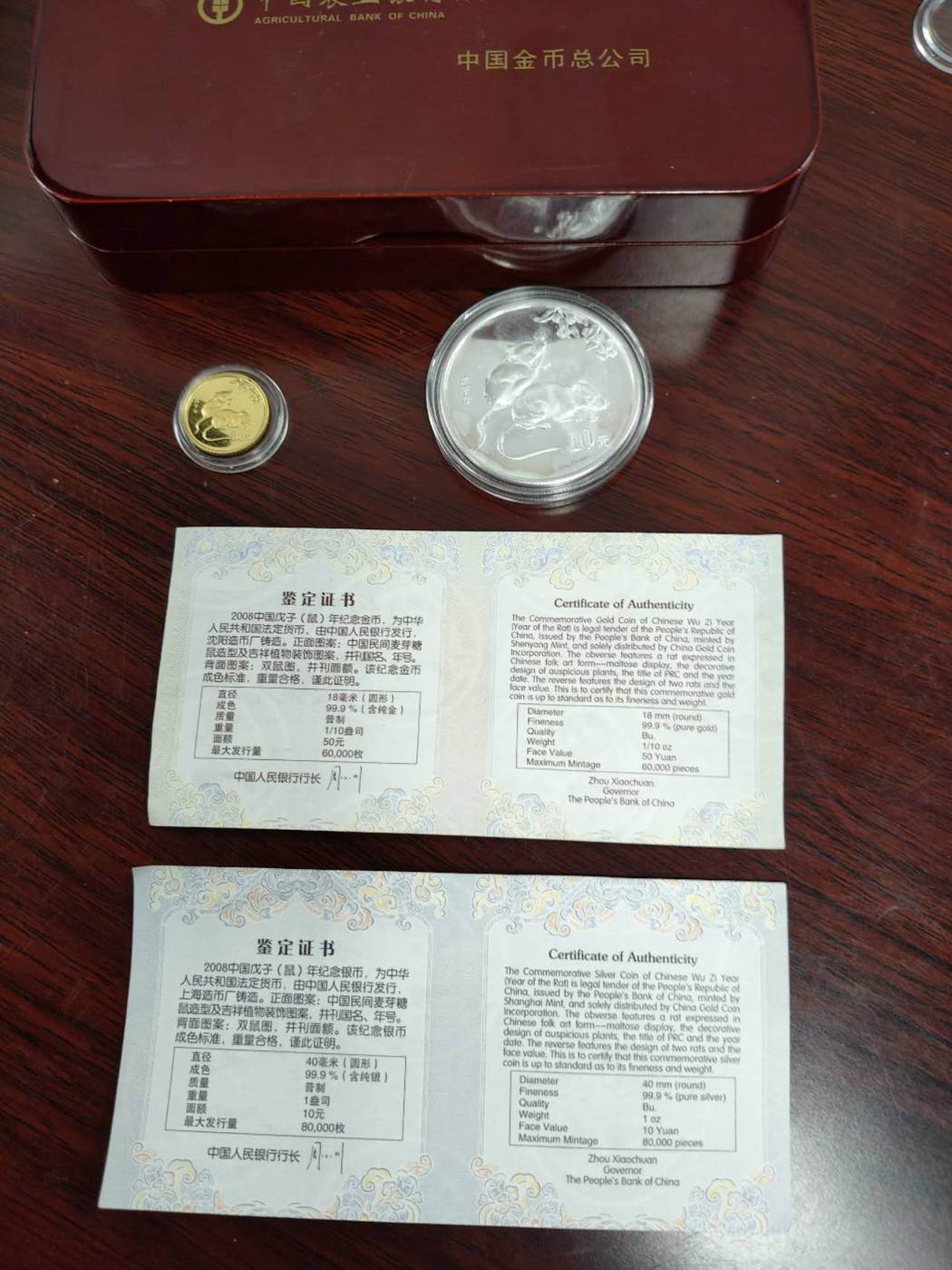 人行金总发行2008本金银生肖鼠一套