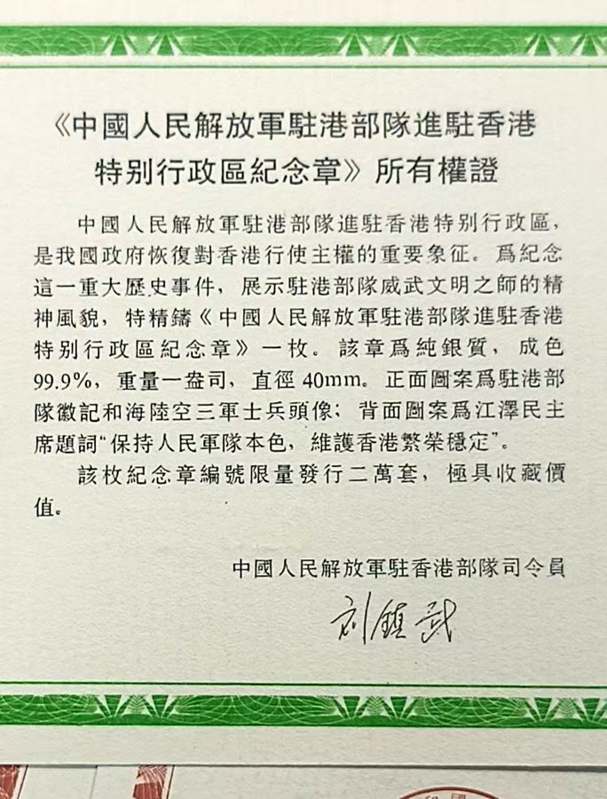 出驻港部队,升旗银币八对共16枚,同走600元一枚
