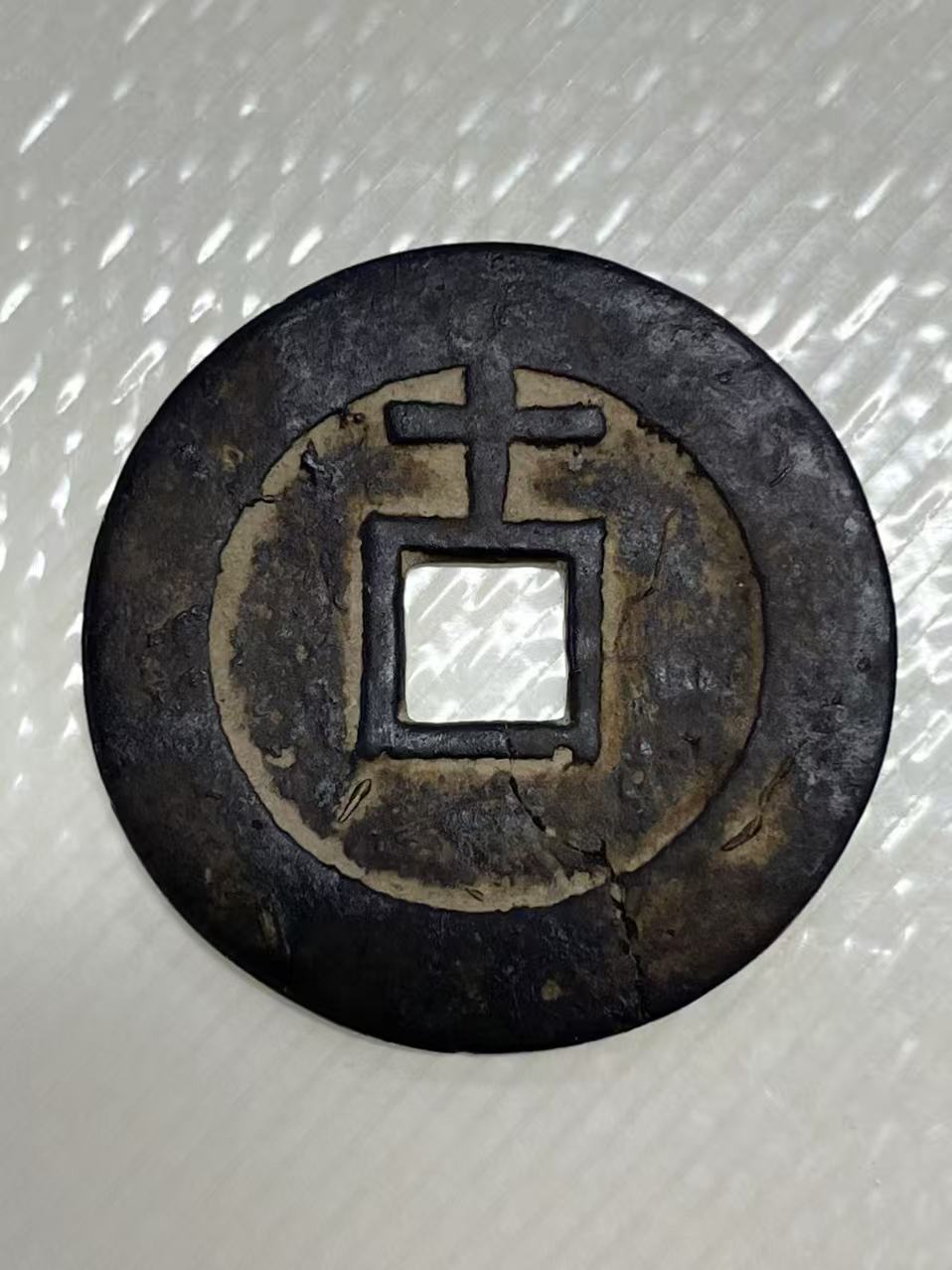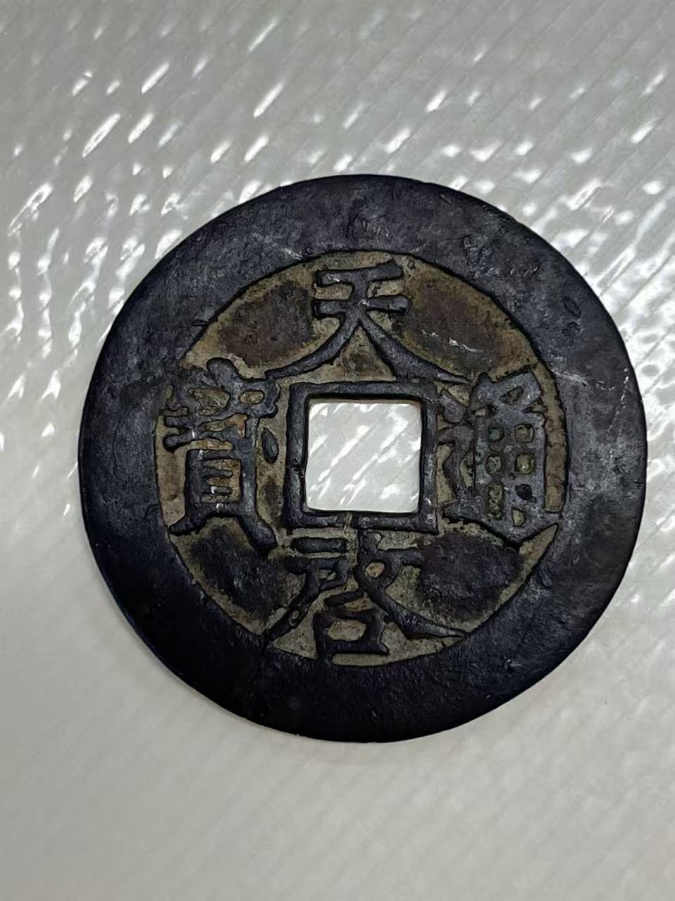 天启大钱一枚保真包老 直径45.5mm厚度2.1mm完整有裂便宜卖1000元包顺丰。