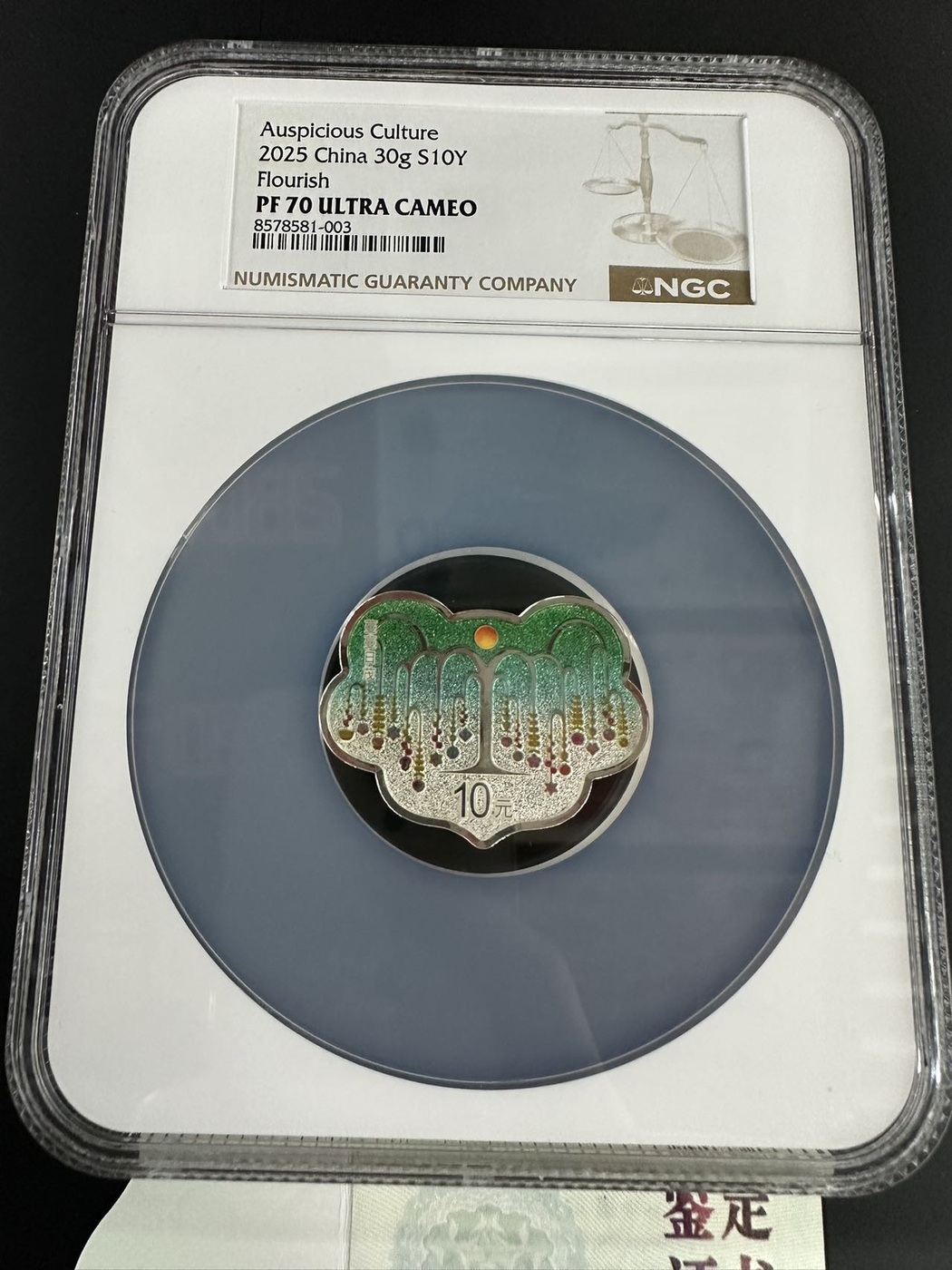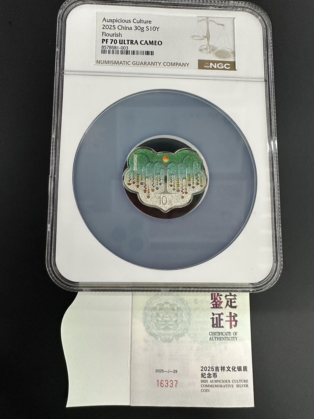 放漏。2025年吉祥文化蔓蔓日茂10元银币:1枚。NGC PF70分。实物拍摄,银币品相完美,