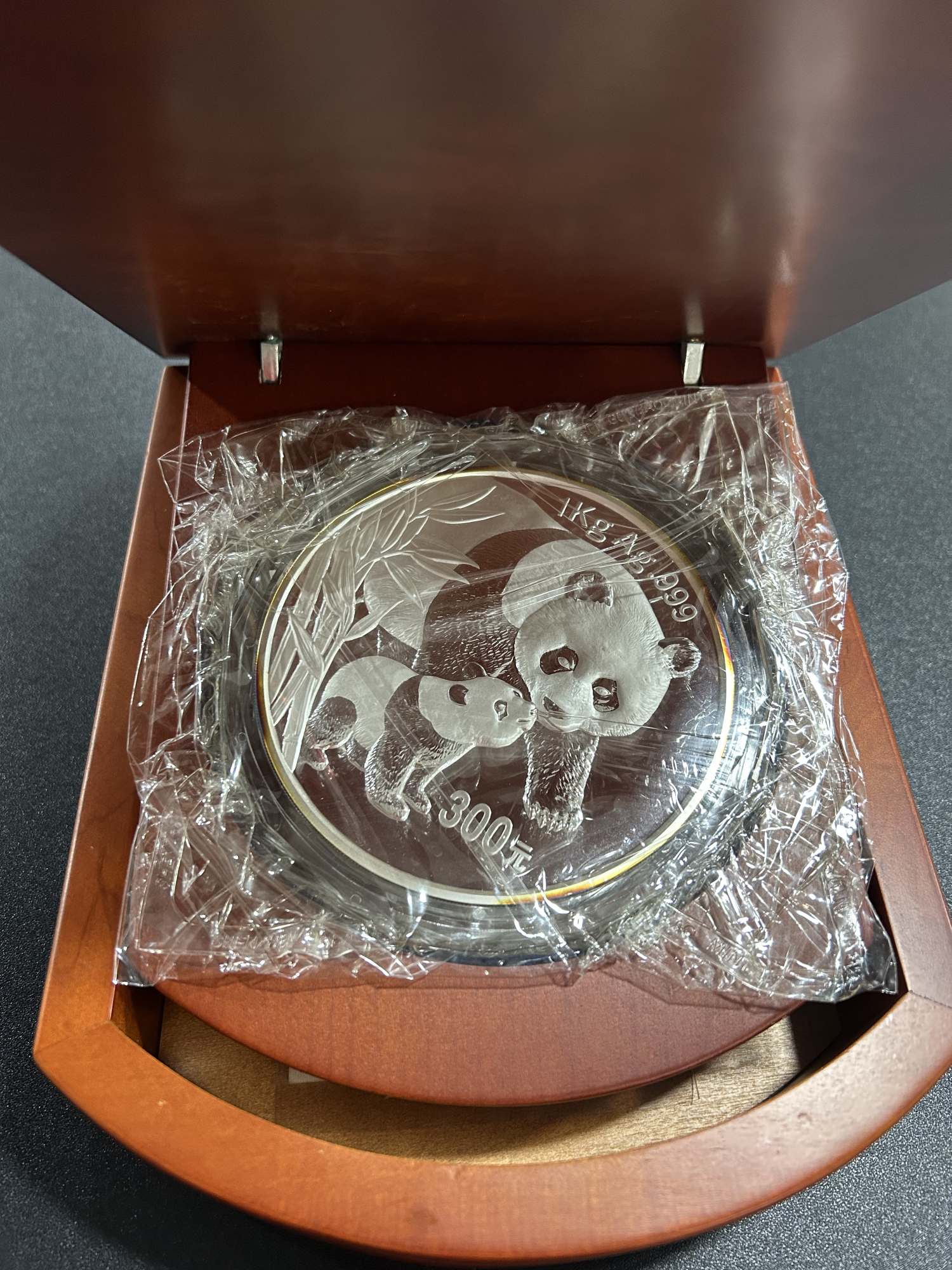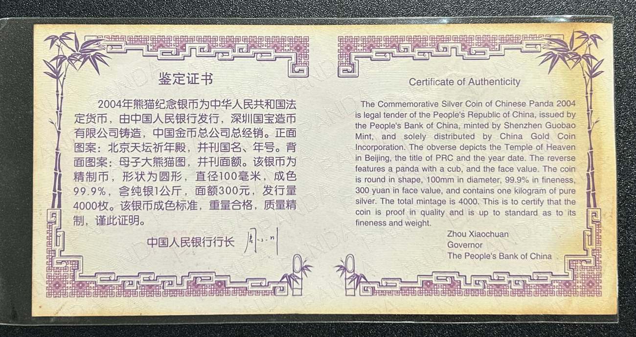 一:2004年公斤银猫一个,原盒原证,边缘正常氧化,币全品。