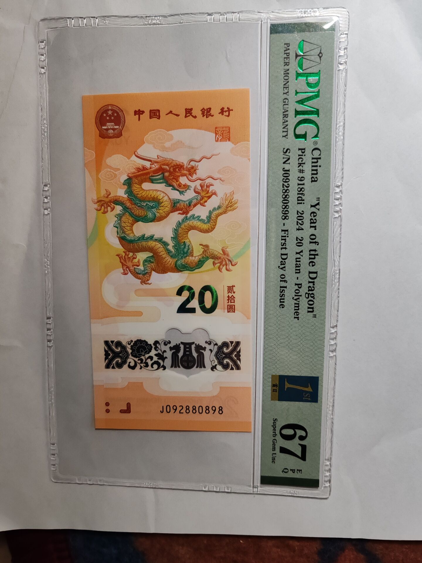 卖龙钞龙珠号pmg67分,4080元一张,号码092880898关门号.贴和顶帖当天有效,可以微信看图,包顺丰