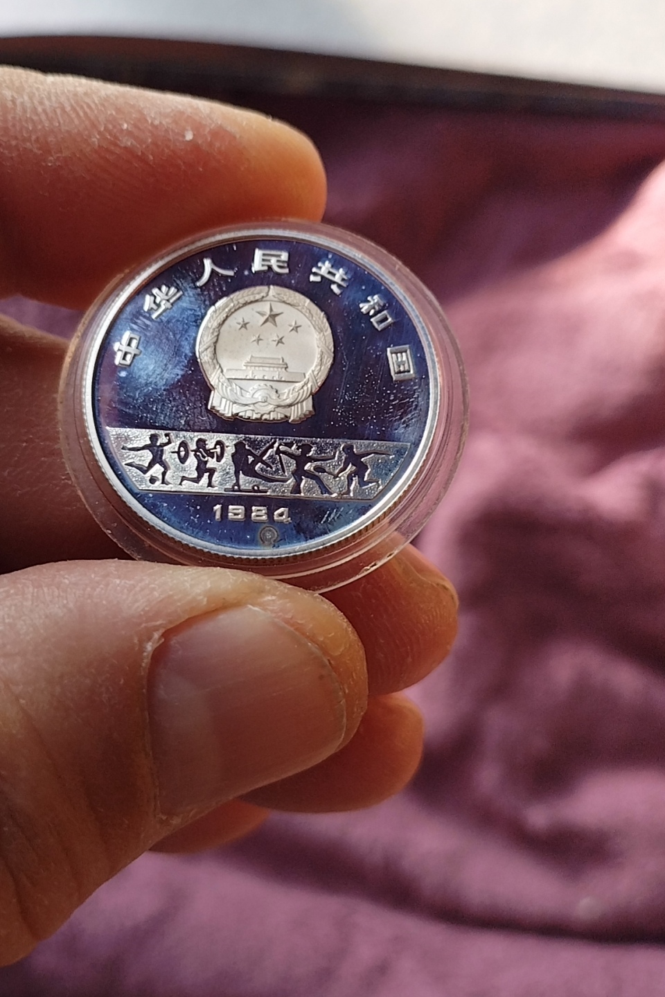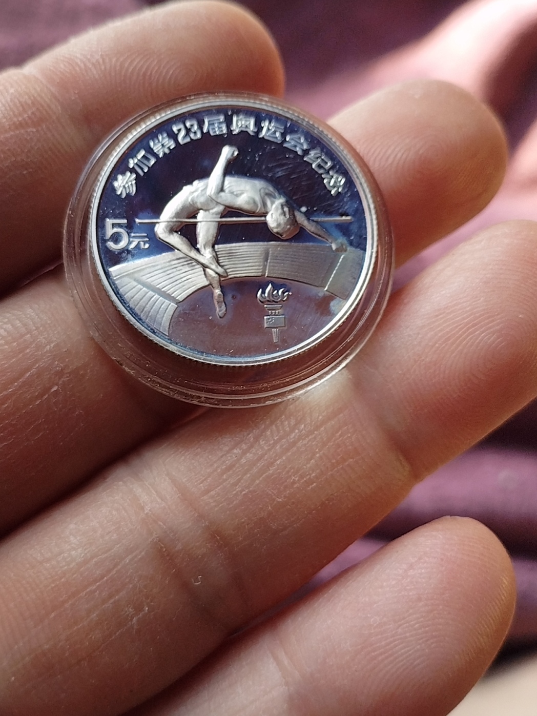 第23届奥运会,男子跳高银币,币面有白雾售价530