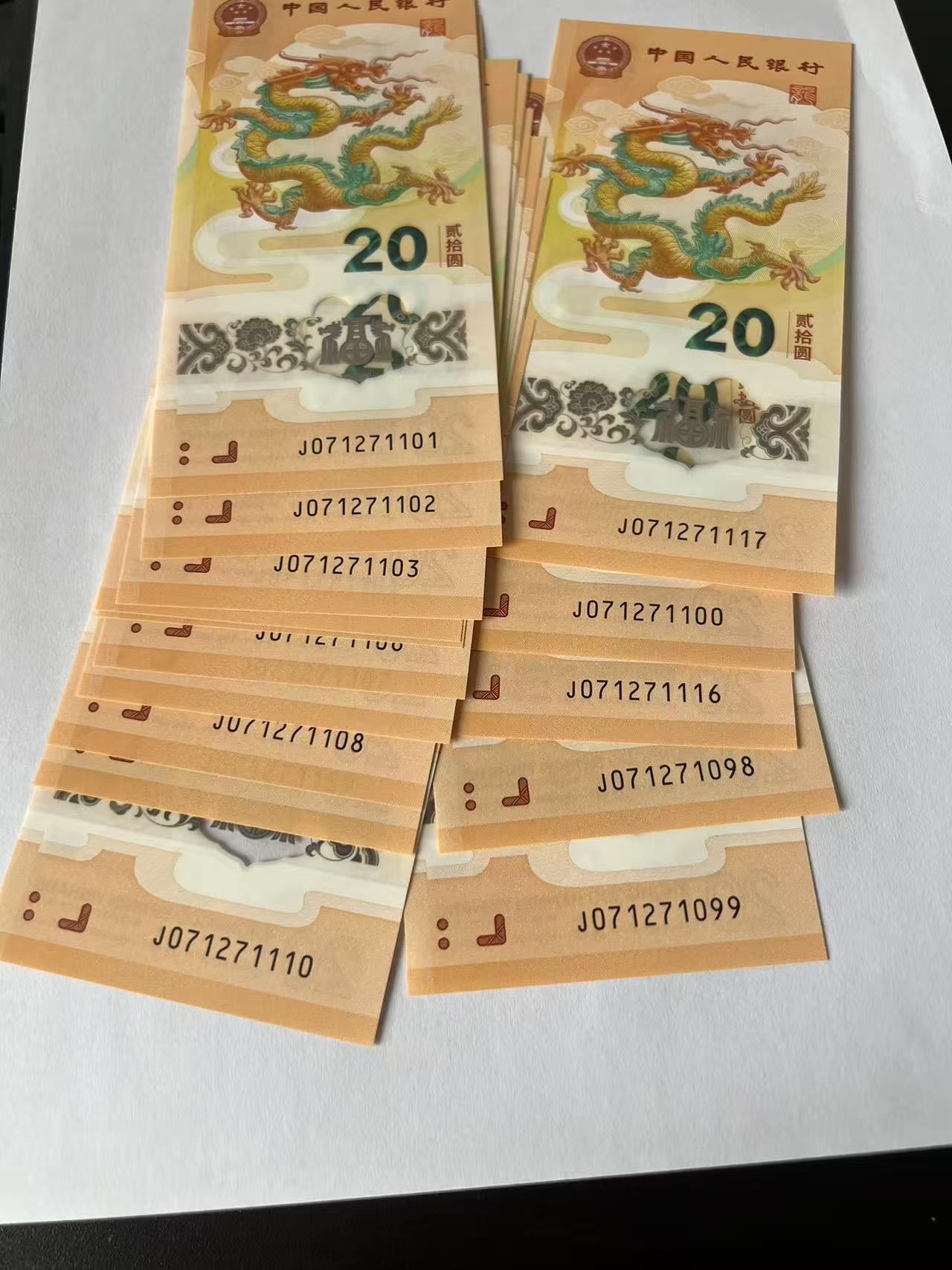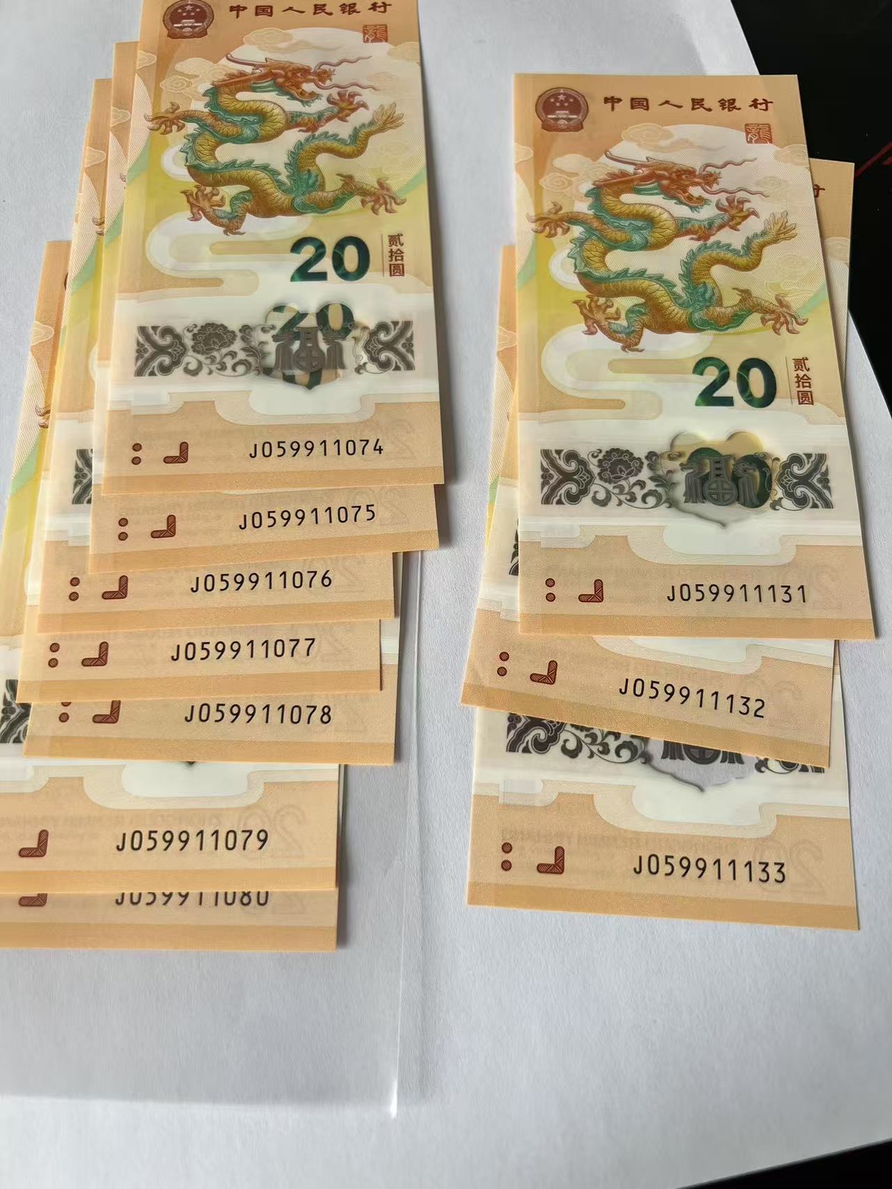 号码如图,共计25张龙钞,尾1101这组是标十,请确认