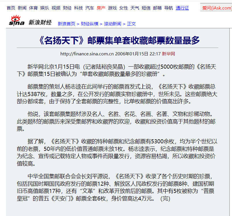 → 专题礼品册《名扬天下》名人名胜名著名物邮票大系