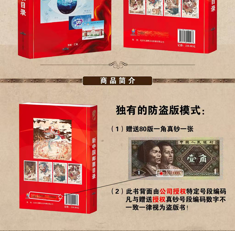 【2024新版邮票目录】118元一本;收录新中国发行的普通邮票、航空、加字改值、欠资、自动化、军人贴用、特、纪、文、编、“JT”、编年、个性化、贺年专用邮票等等彩图几千幅高清原图,并附邮票发行时间、发行数量、规格尺寸、版别信息、市场参考价格、设计者等等;参考并整理了上海、北京、广州一线专业市场和网上最新成交价为依据,在中国邮票的基本资料上进行了系统分类汇总,如:厂铭十珍、邮票筋票、文革单张、新票市场参考价等进行归纳集邮稀缺筋票知识和市场参考价格、版铭邮票知识、市场需求、成交价格,是至今最全面的邮票知识精粹书籍,2023年再版发行,根据2019年、2022年度邮票市场价格进行了再次的校对,部分做了相应调整,内含74-91年邮票厂铭,珍稀度分析、筋票知识,文革邮票、新票市场参考价等,从解放后到2022年全部邮票,型张、数据、发行量;更新到2024年1月发行的第一套生肖邮票,为集邮收藏爱好者增长知识提供了全面丰富的参考依据!此书开本787X1092mm,360千字676页.重1360克