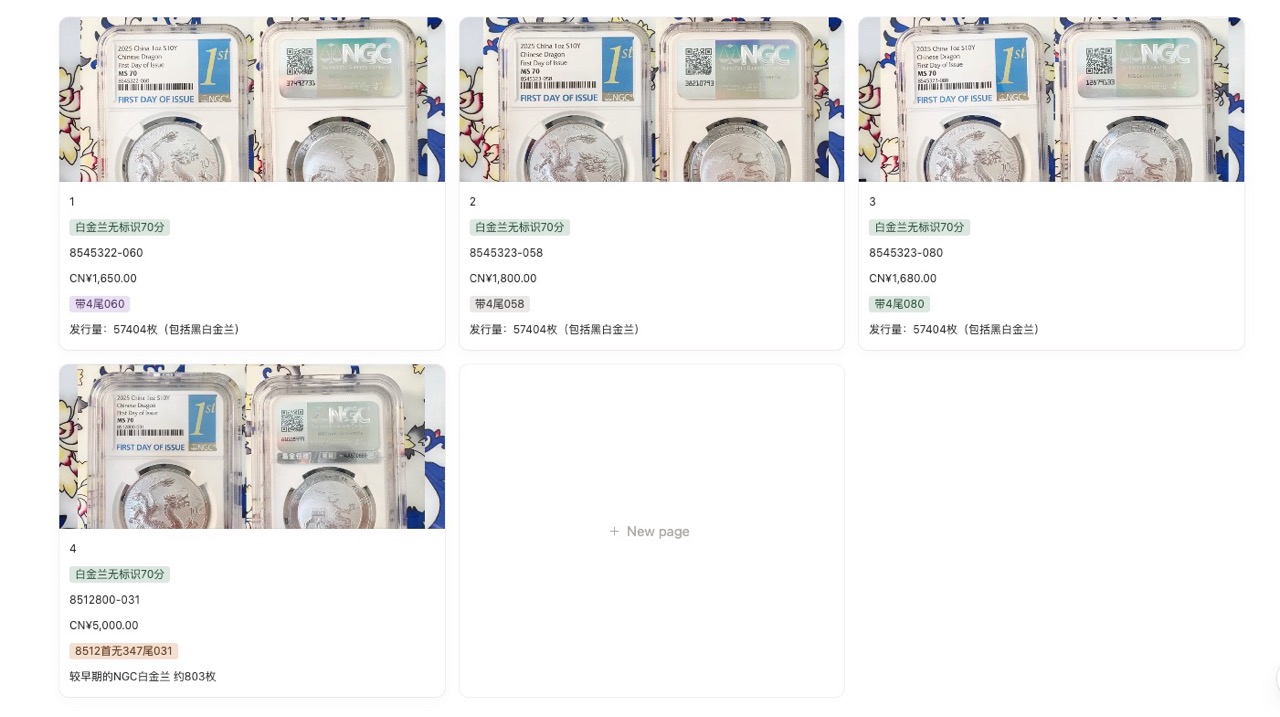 → 包邮出售-2025中国龙银NGC白金兰无标识靓号四枚