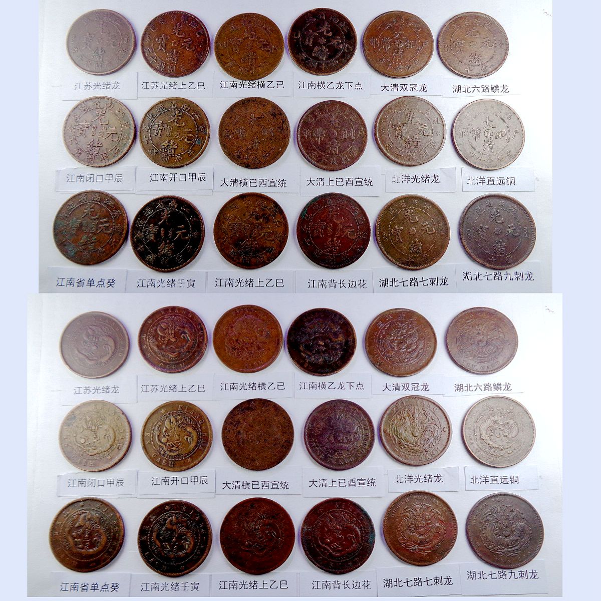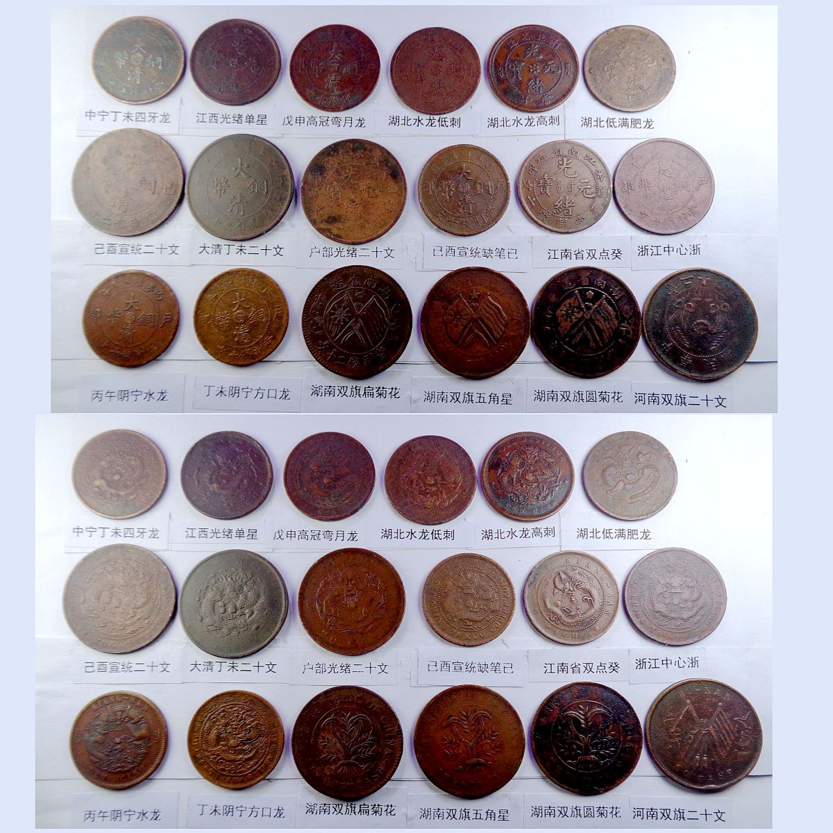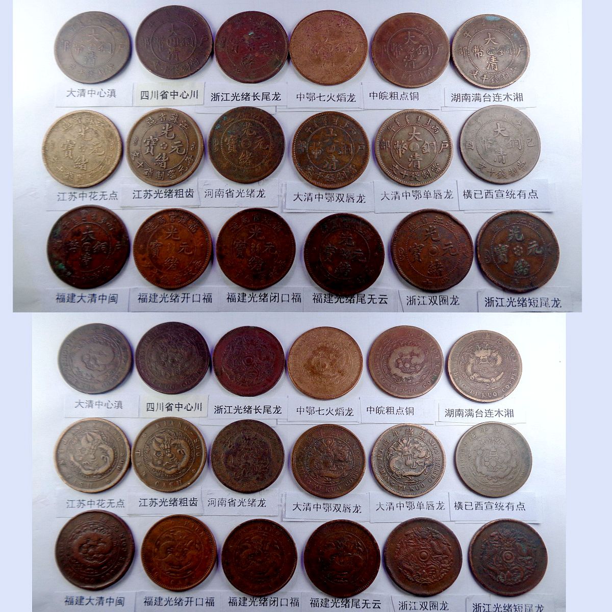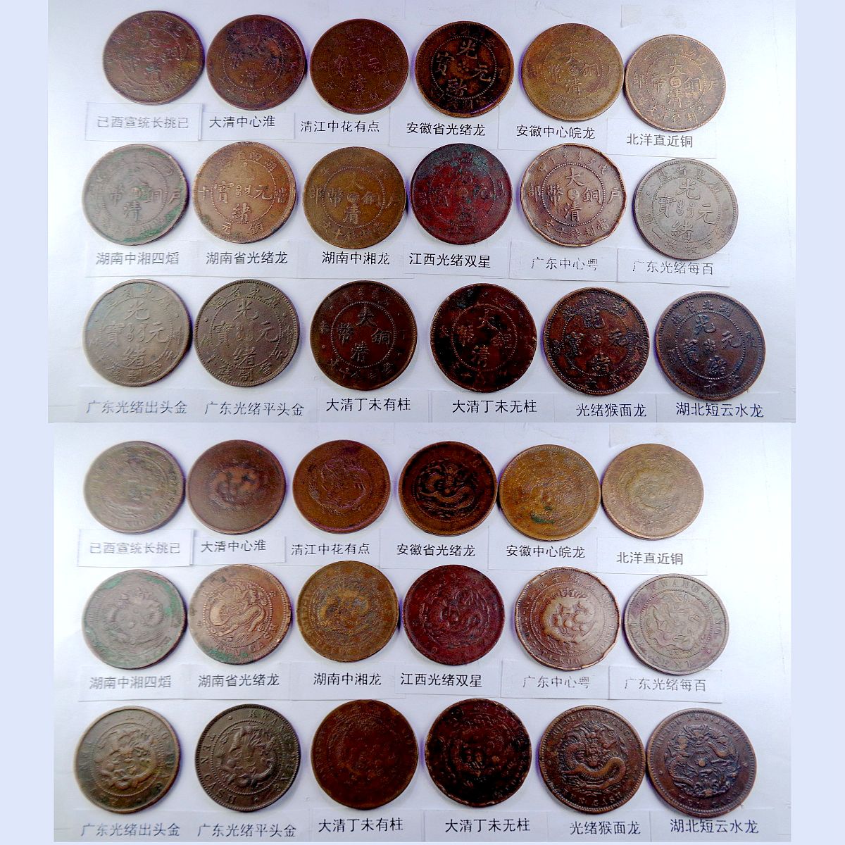 都是存世巧克力包浆和黑牡丹包浆。所售钱币终身包老包真。假*币包退赔。具体品种是: 江苏光绪龙 江苏光绪上乙已 江南光绪横乙已 江南横乙龙下点 大清双冠龙 湖北6路鳞龙 大清横已酉宣统 大清上已酉宣统 江南闭口甲辰 江南开口甲辰 北洋光绪龙 北洋直远铜 江南光绪癸戊 江南光绪壬寅 江南光绪上乙已 江南背长边花 湖北7路7刺龙 湖北7路9刺龙 已酉宣统长挑已 大清中心淮 清江中花有点 安徽光绪龙 安徽中心皖 北洋直近铜 湖南中湘四焰 湖南省光绪龙 湖南中湘龙 江西光绪双星 广东中心粤 广东光绪每百 广东光绪平头金 广东光绪出头金 大清丁未有柱 大清丁未无柱 光绪猴面龙 湖北短云水龙 大清中心滇 四川省中心川 浙江光绪长尾龙 中鄂七火焰龙 中皖粗点铜 湖南满台连木湘 江苏中花无点 江苏光绪粗齿 河南省光绪龙 大清中鄂双唇 大清中鄂单唇 横已酉宣统有点 福建大清中闽 福建光绪开口福 福建光绪闭口福 福建光绪尾无云 浙江双圈龙 浙江光绪短尾龙 中宁丁未四牙龙 江西光绪单星 戊申高冠弯月龙 湖北水龙低剌 湖北水龙高剌 湖北低满肥龙 已酉宣统二十文 大清丁未二十文 户部光绪二十文 已酉宣统缺笔已 江南省双点癸 浙江中心浙 丙午阴宁水龙 丁未阴宁方口龙 湖南双旗扁菊花 湖南双旗五角星 湖南双旗园菊花 河南双旗二十文 开国纪念空心圈 河南双旗十文 开国纪念大吊樱 开国纪念实心圈 广东省一仙铜币 民国党微一分 湖南禾花十文 开国纪念连叶 。