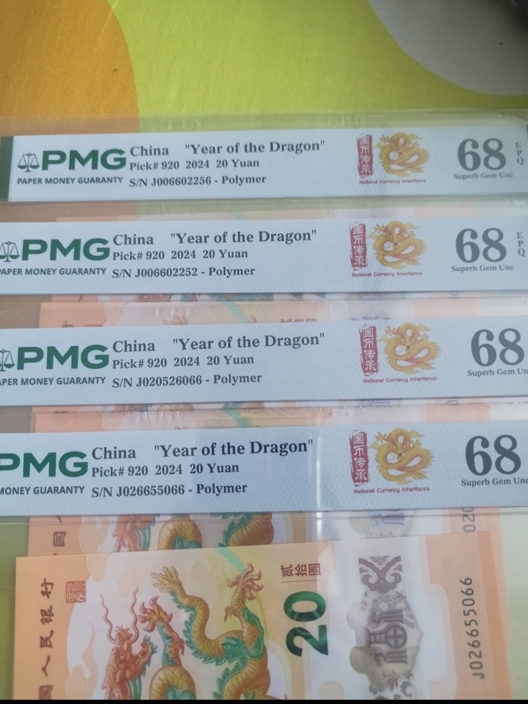 出小龙钞0256PMG68分四张