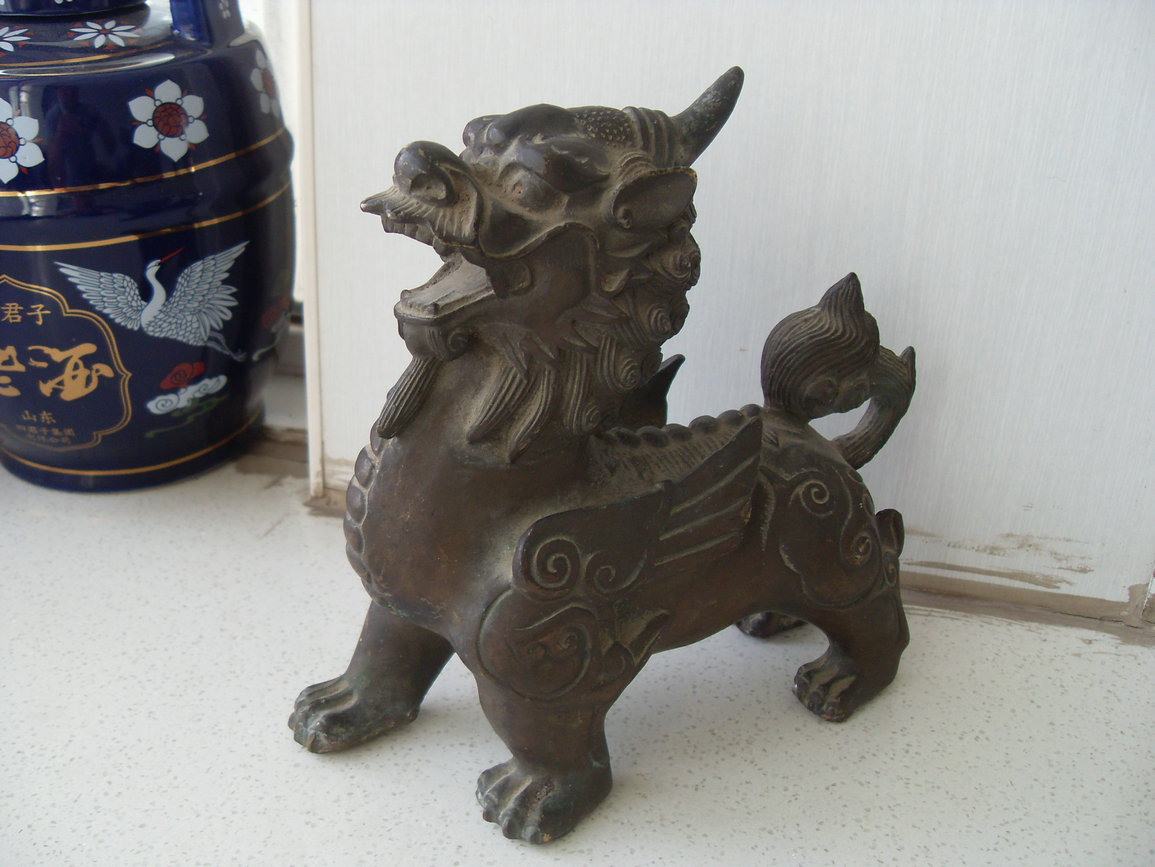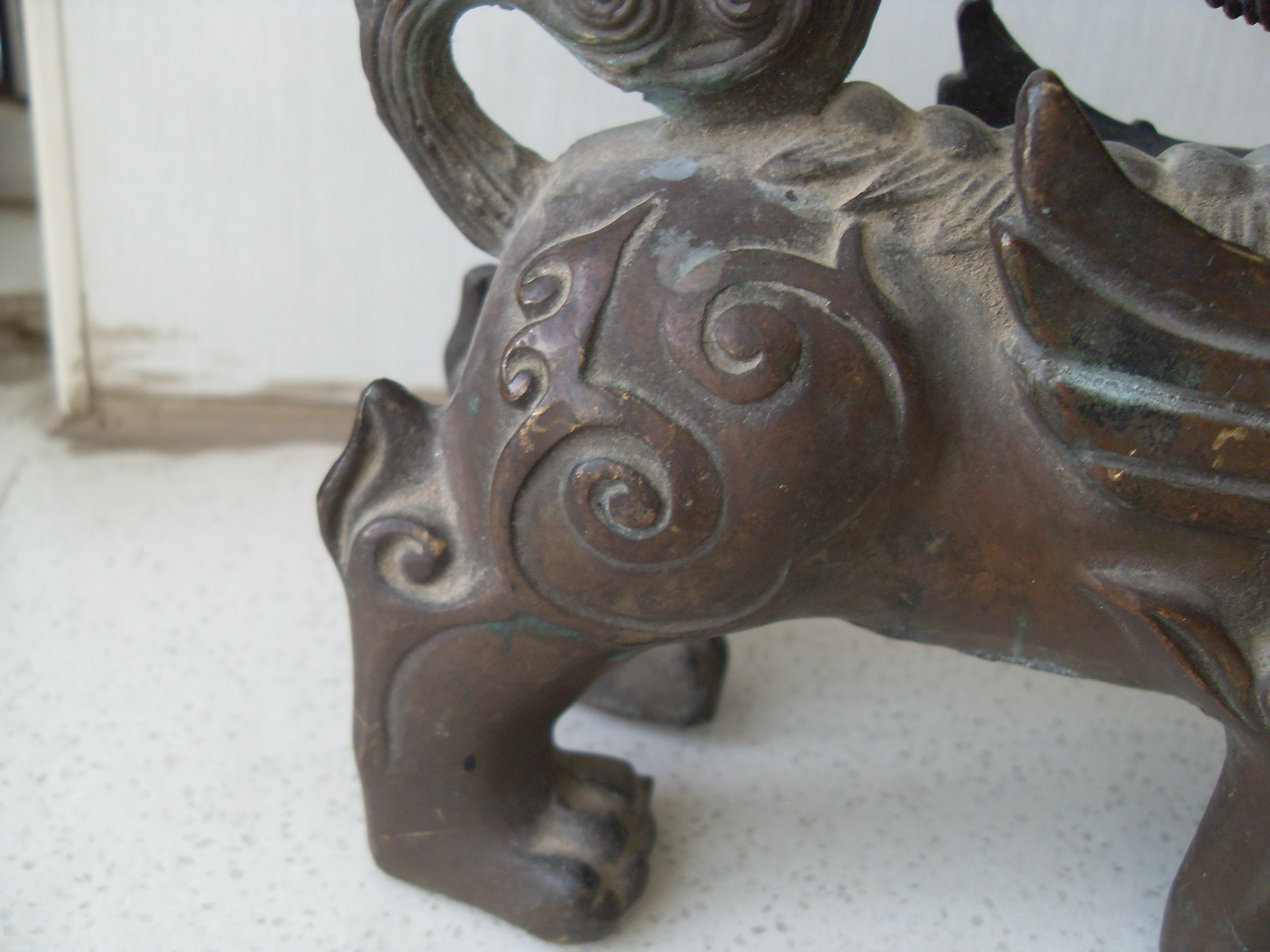 【很少遇到】罕见经典的老铜瑞兽一对!!