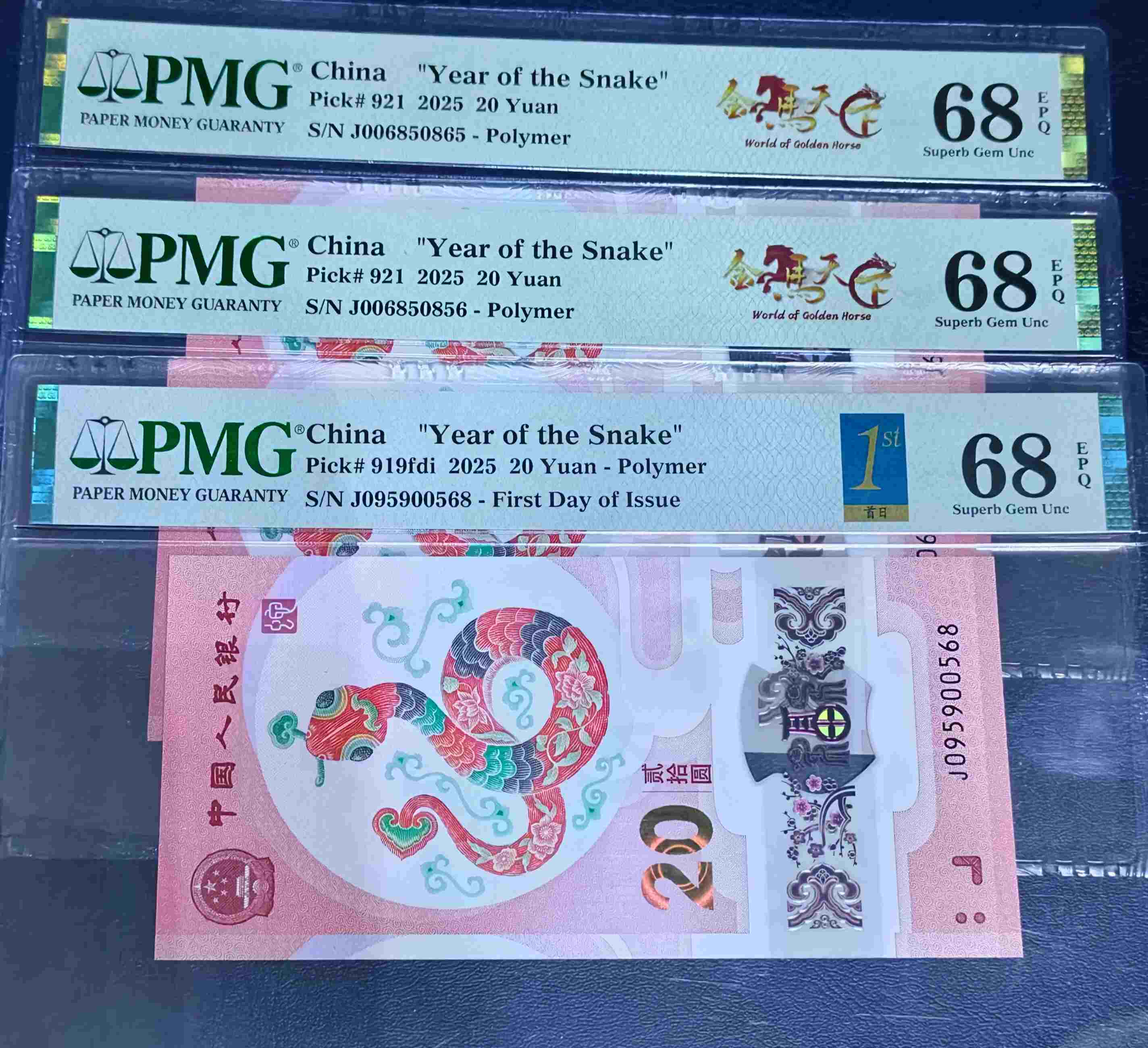 出蛇钞 金马天下、金马王 2张0568金马天下、1张尾8首日95至尊金马王,价:1260*3=3780