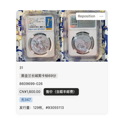 → 包邮出售-2025中国龙银NGC黑金兰长城智能卡剪卡标 69分无347靓号1枚