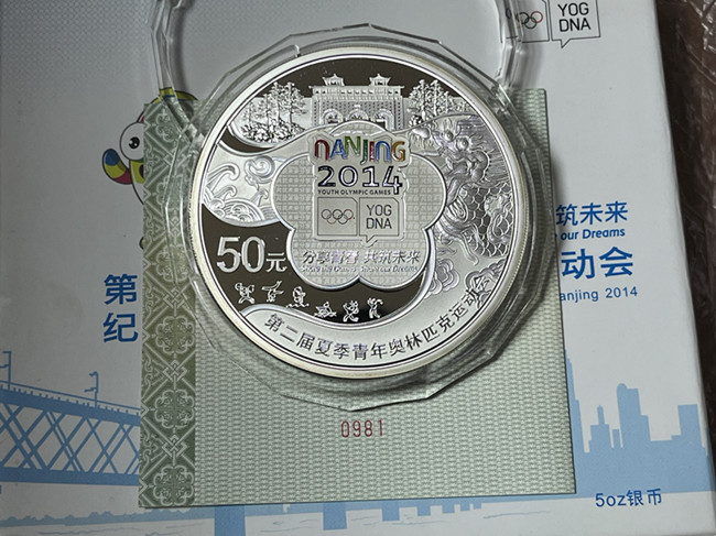 青奥会售4000元一枚,发行量仅2000枚,证盒齐全有氧化介意勿扰包顺丰