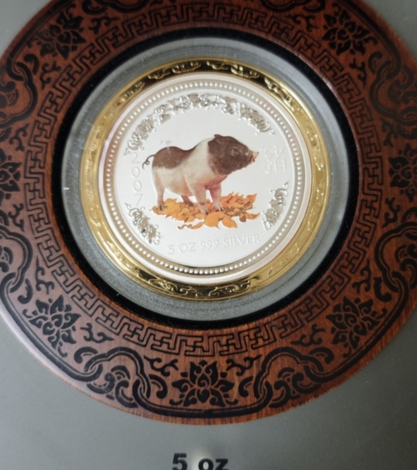 2007年澳大利亚珀斯造币局猪年5盎司彩银币,3500元,三包顺丰快递,多网同售以我确认为准