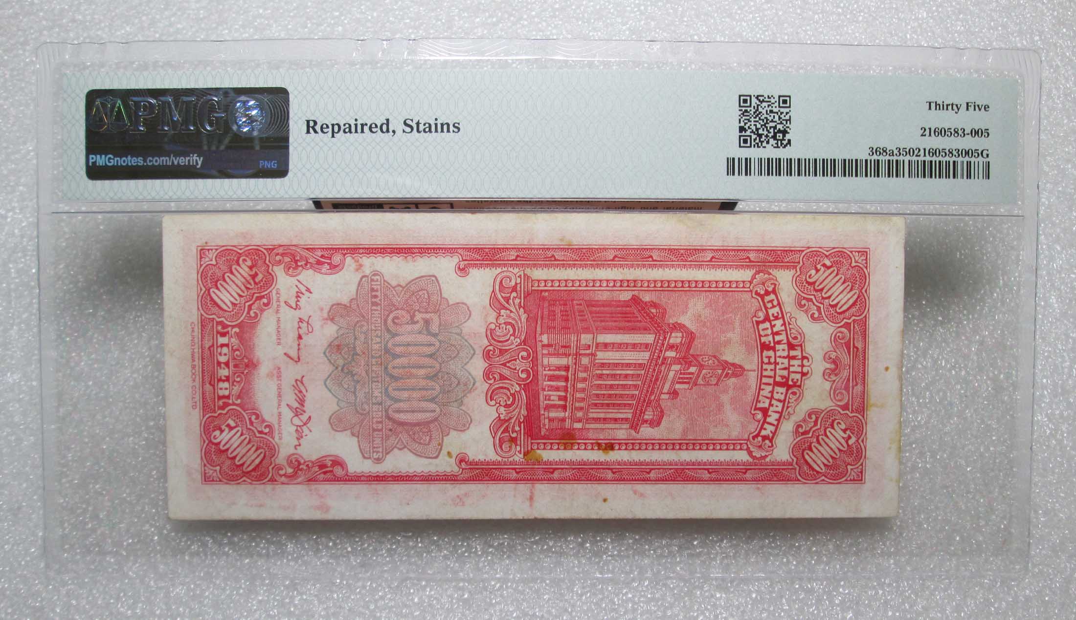 → 中央银行名誉品关金红五万元