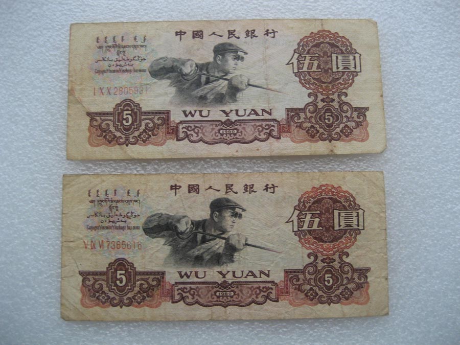 → 原票炼钢伍元 两枚
