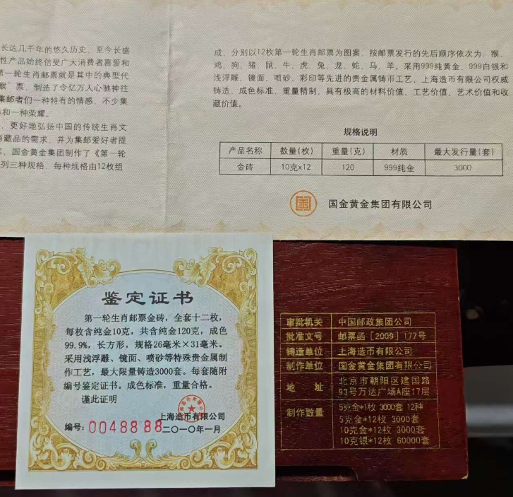 第一轮邮票金砖 10*12 120克 限量发行3000套