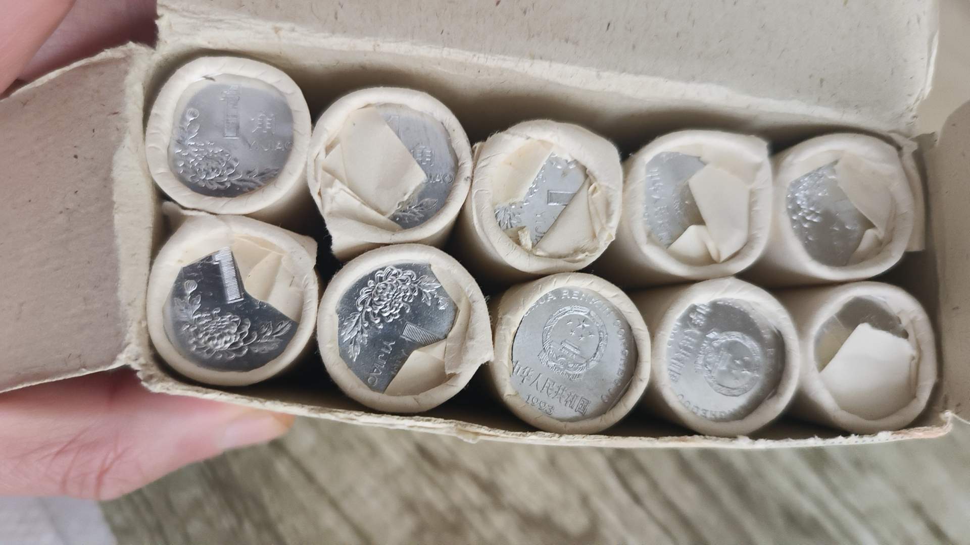 93菊花一角开盒一个,币非常亮,690元一盒