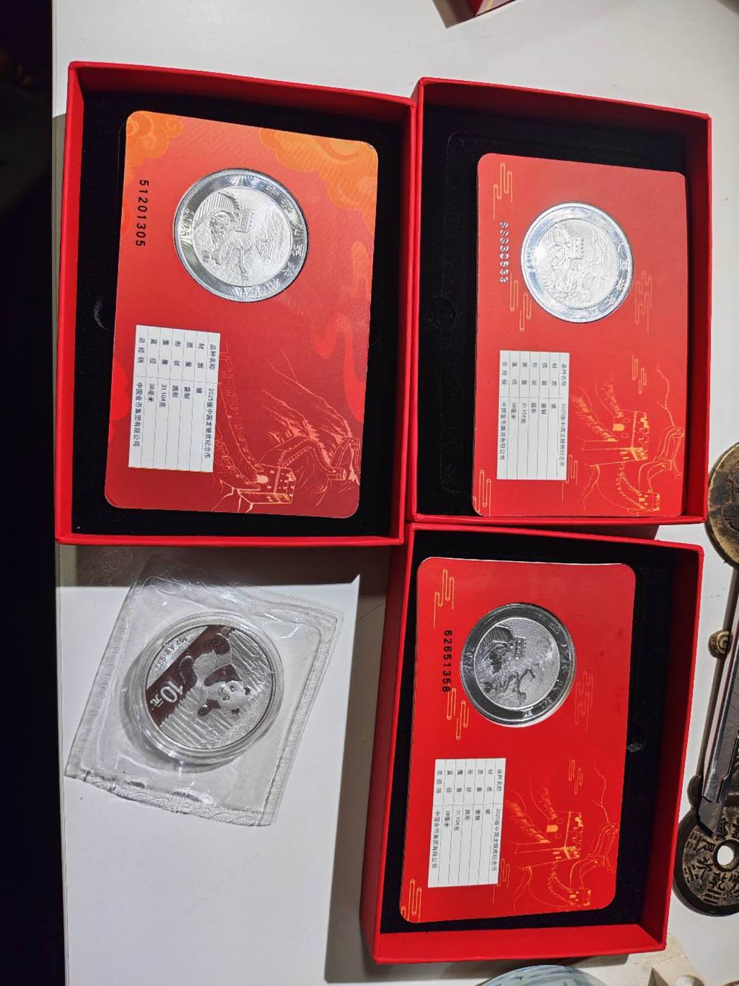 出3枚龙卡加熊猫币