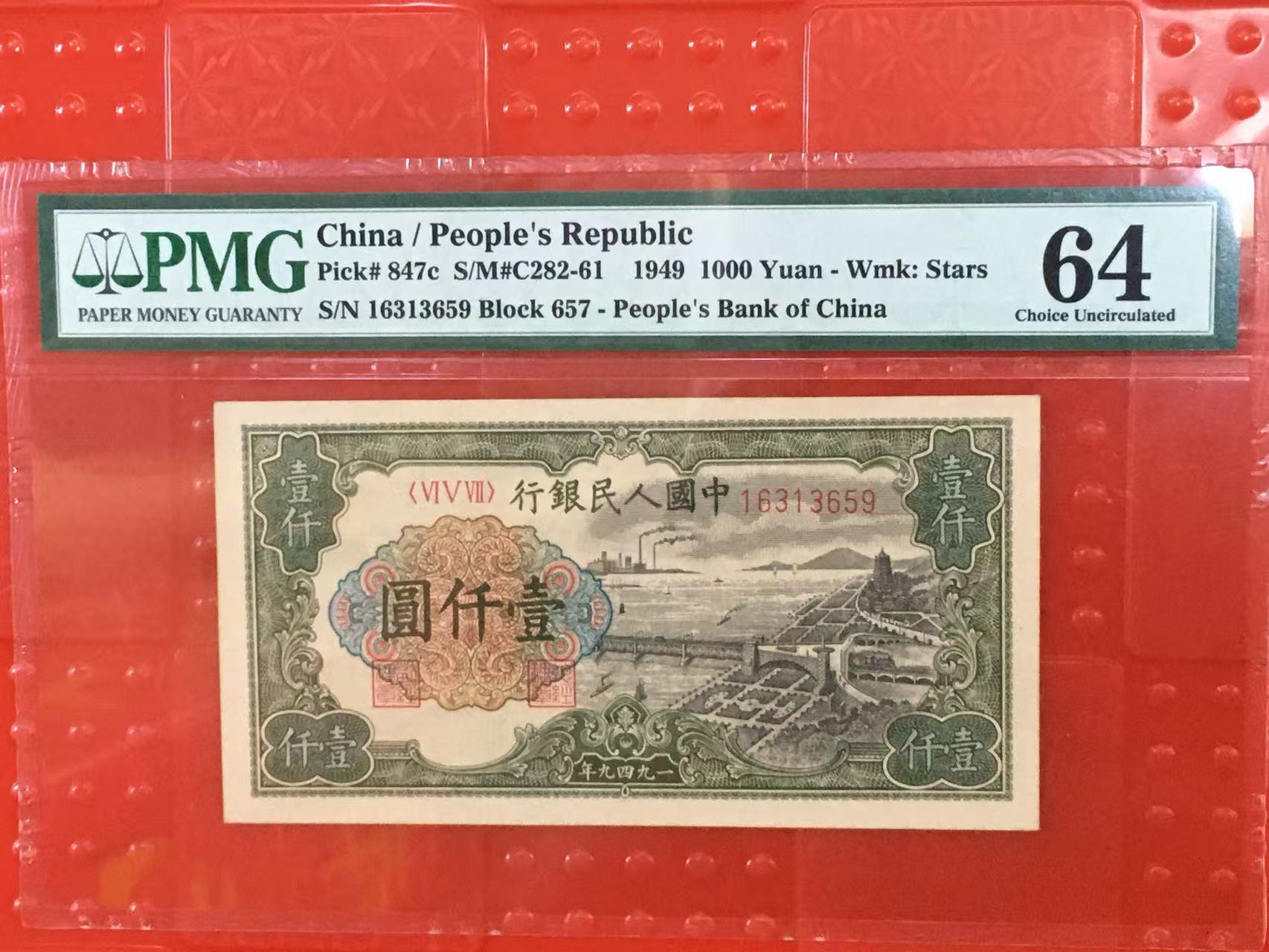 → 一版币PMG64壹仟圆钱塘江大桥