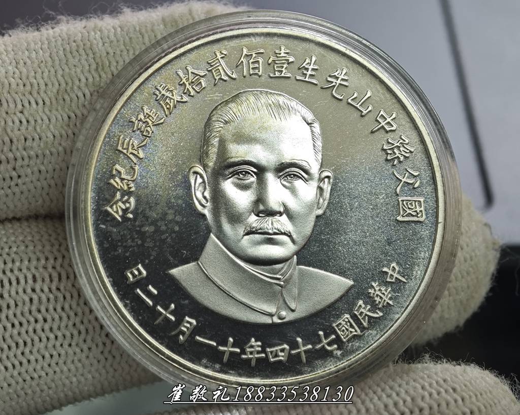1985年国父孙中山先生壹佰贰拾岁诞辰纪念1枚(27克含银925全品微氧无盒无证)、
