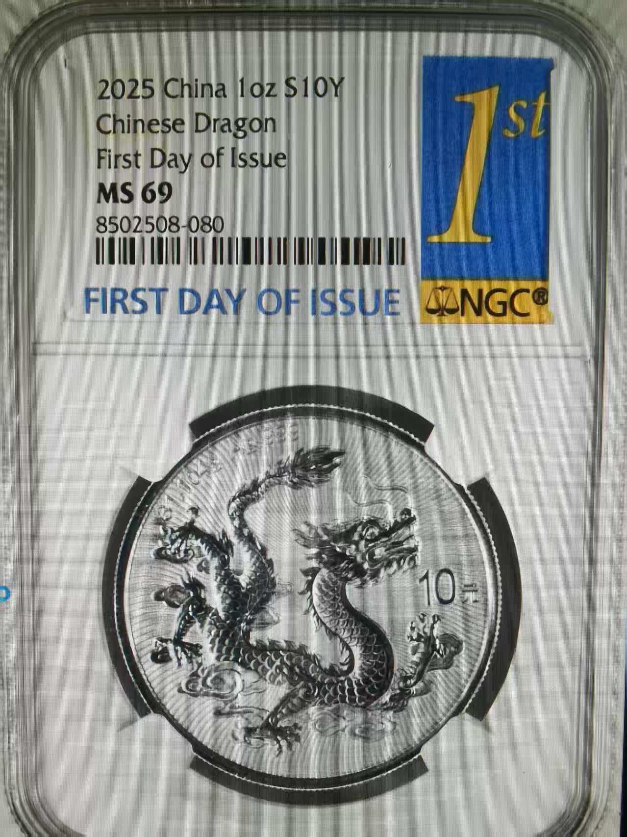 出2025中国龙银币NGC评级69分首日金兰标标十1组