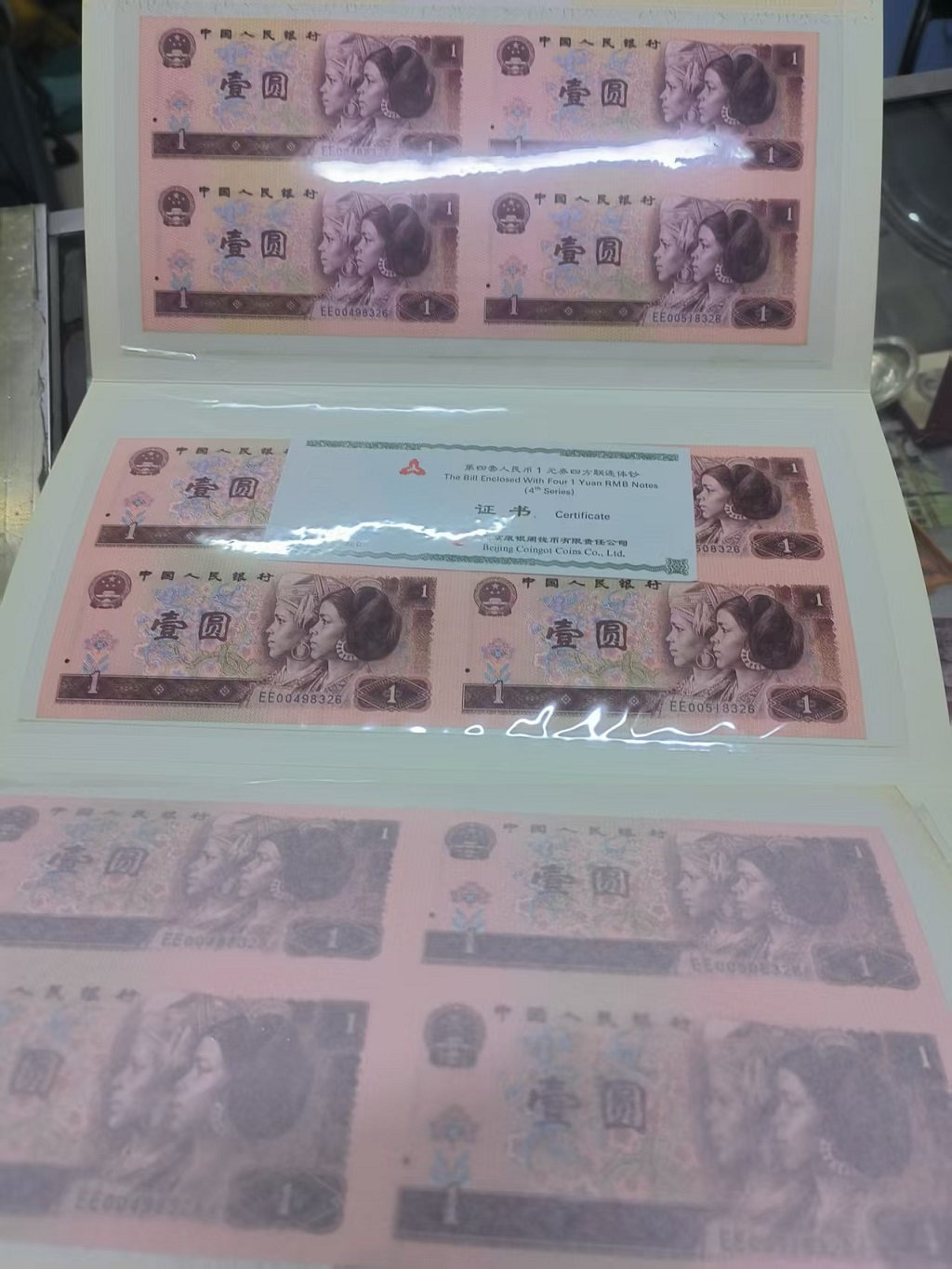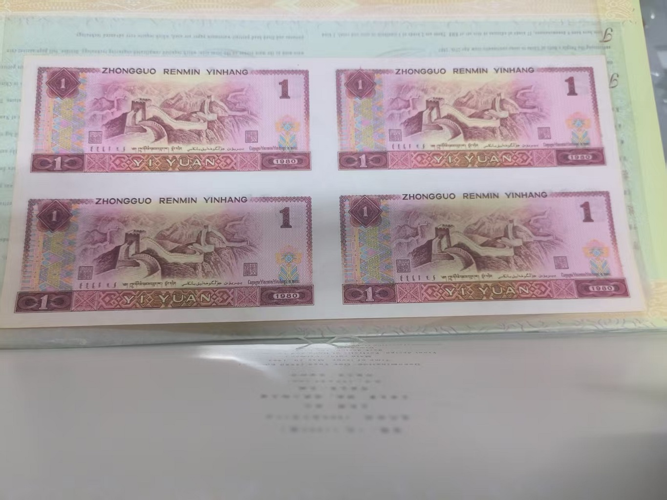 1元四连体一本,801元背面两个边上发黄,售价1320元,请看图,电话联系13303296298