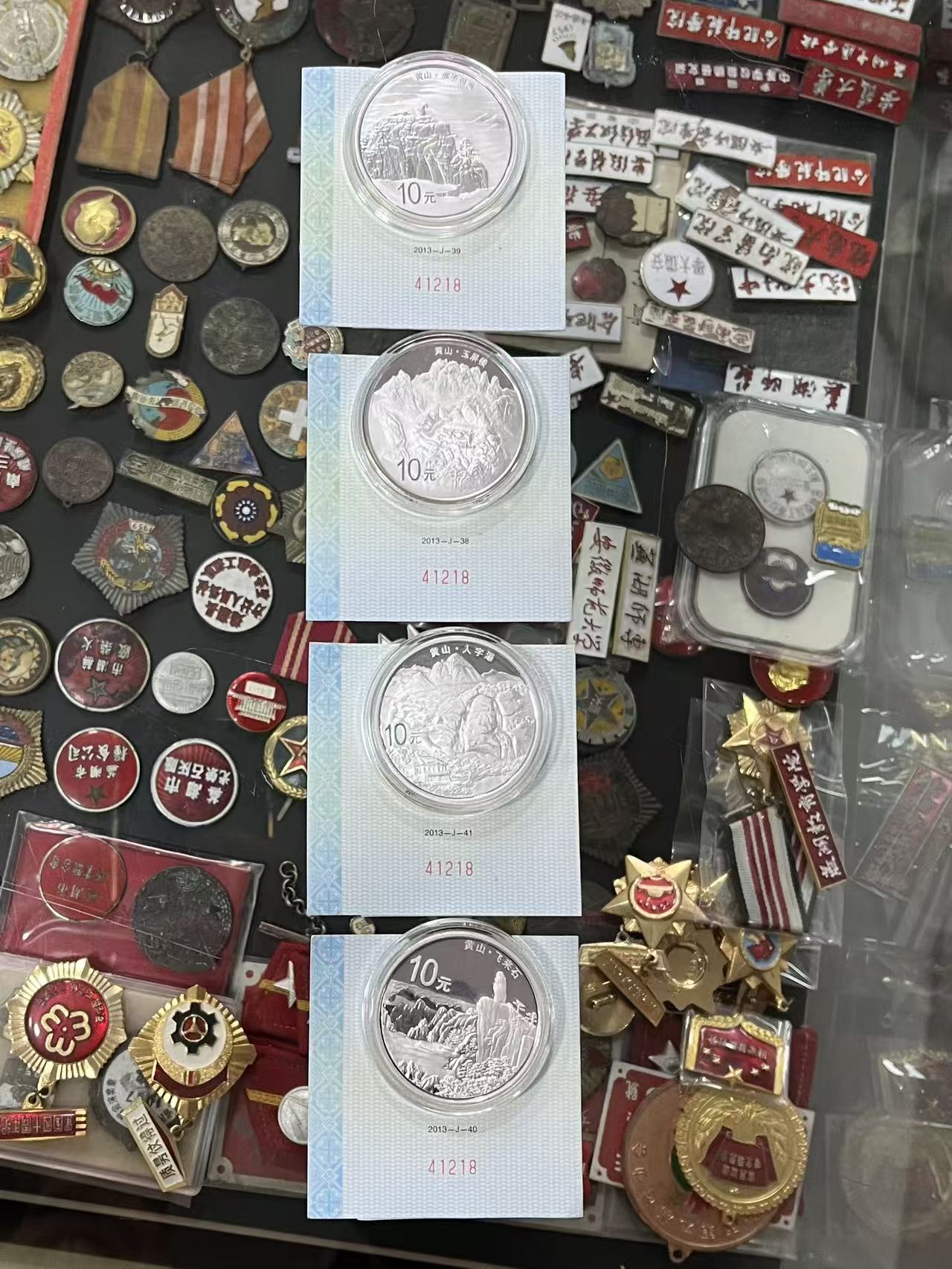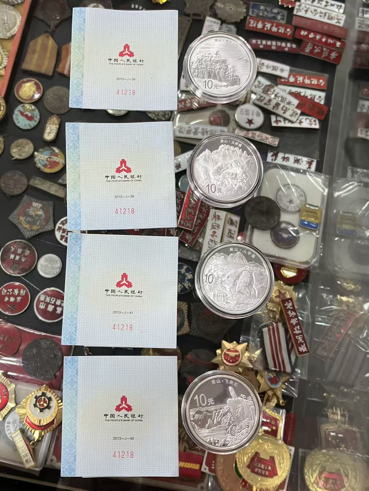 → 黄山银币一套4枚,带证,币什么瑕疵都没有