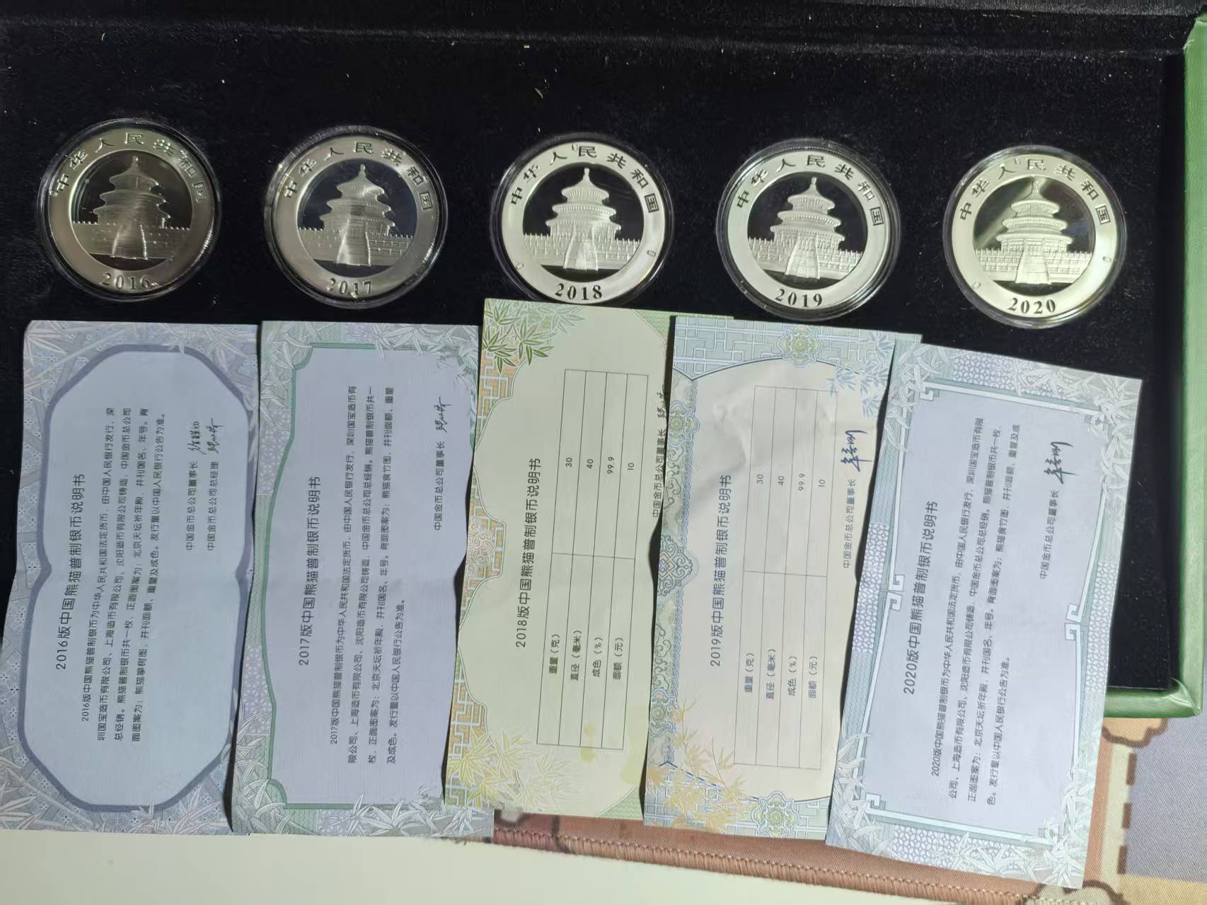 如图熊猫银币5枚 2016至2020 售价每枚580元,一起出 手机微信同步 联系确认