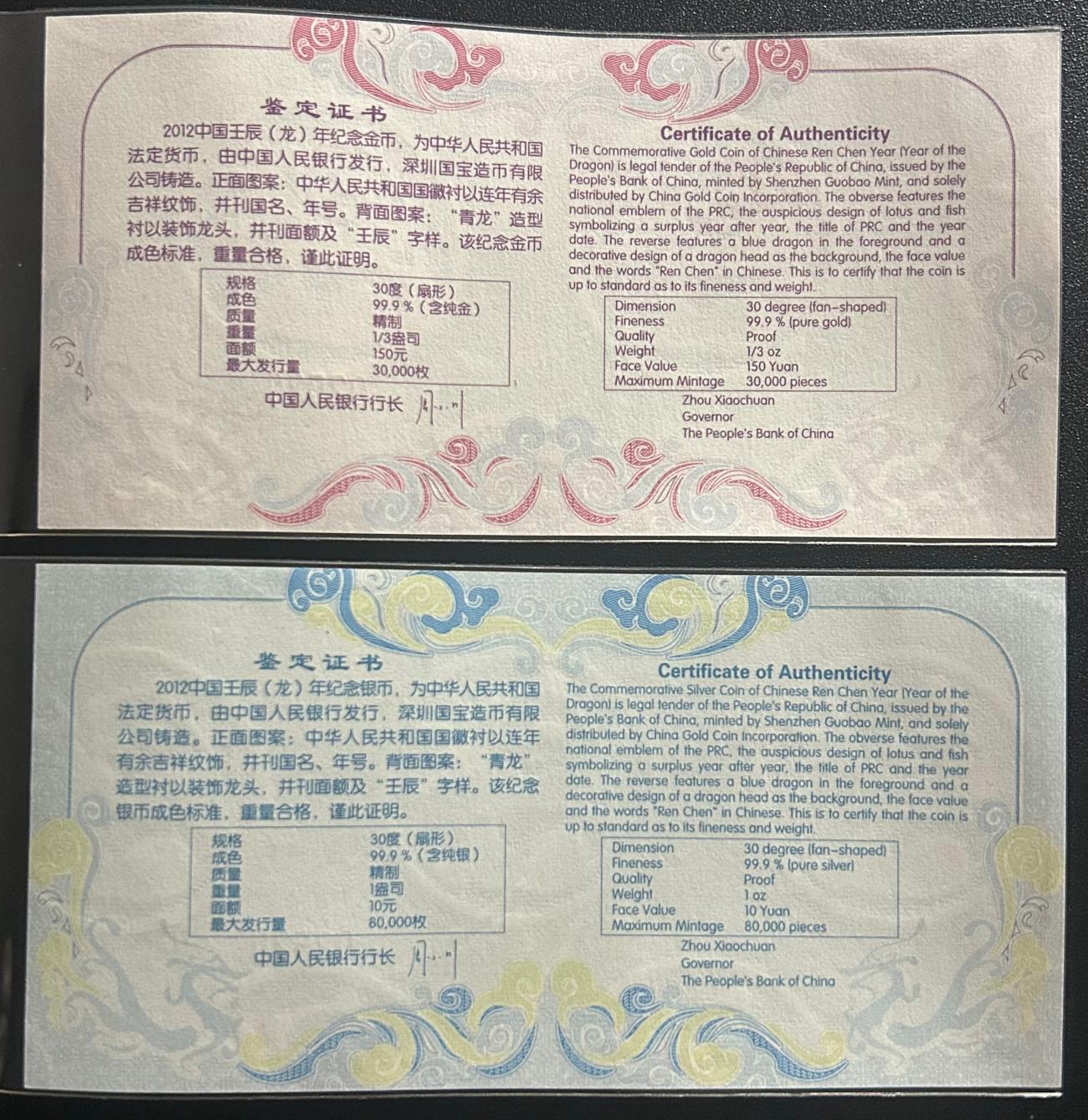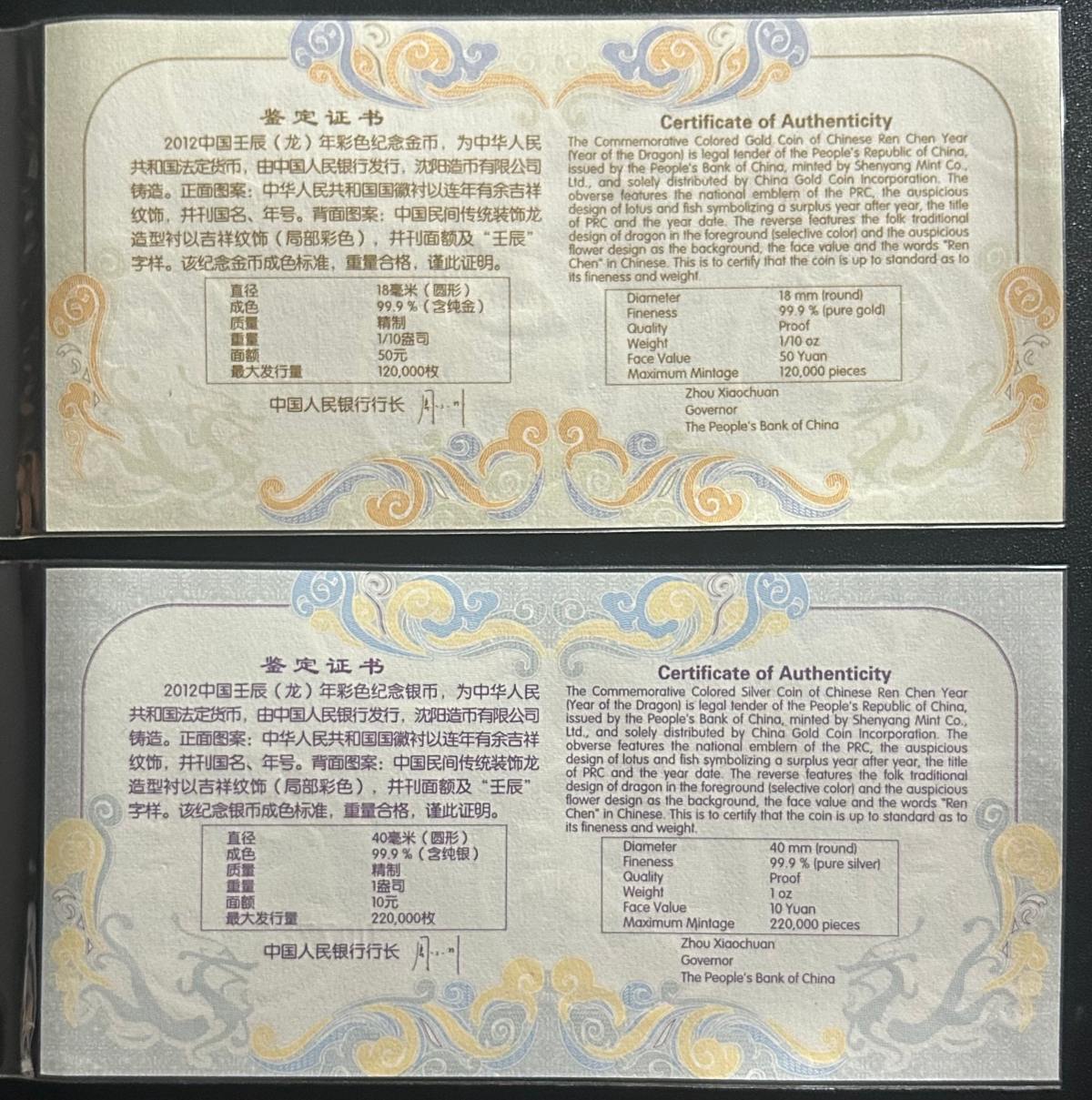 一:2012年彩色金银龙,售3800元