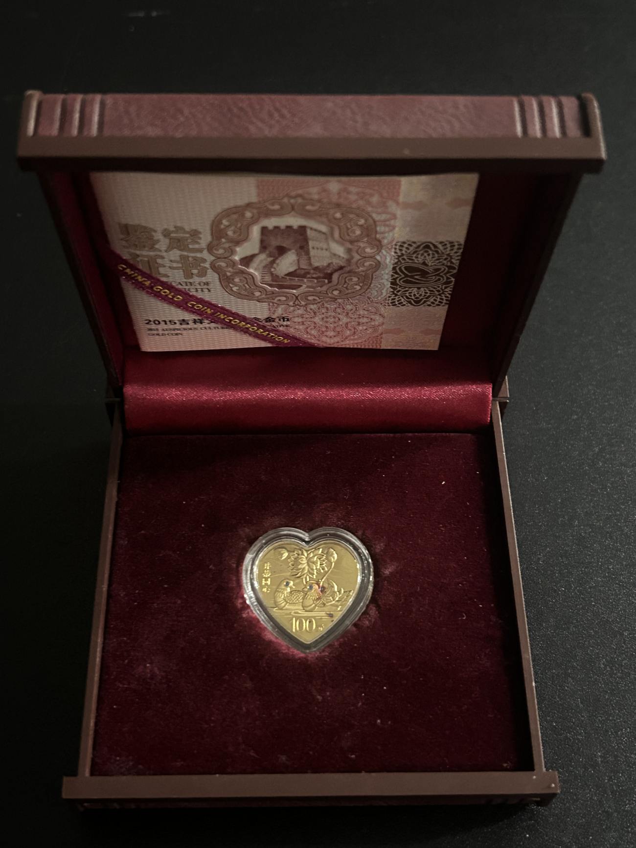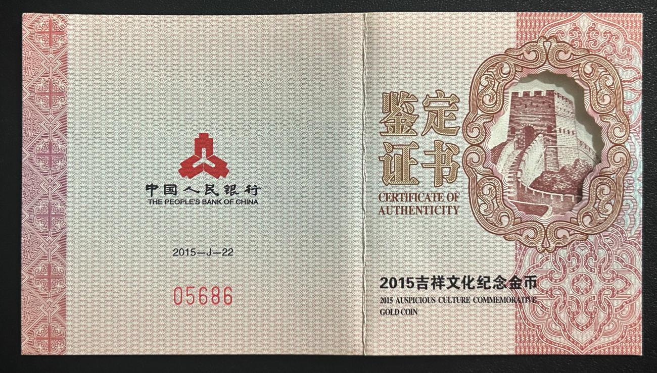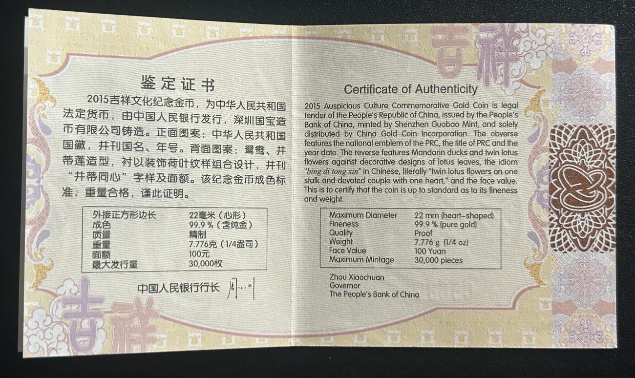 三:2015年并蒂同心金币,售7830元